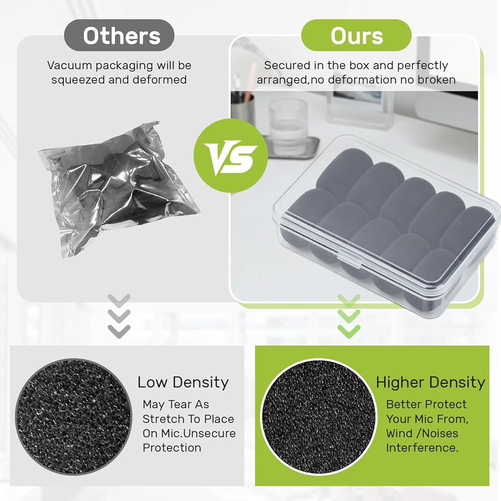 High-density foam is soft,breathable,and durable,easy to clean and dry,supporting repeated use.We provide premium foam covers that effectively prevent dust and saliva from contaminating the microphone.By reducing background noise and wind interference,they significantly enhance recording quality.