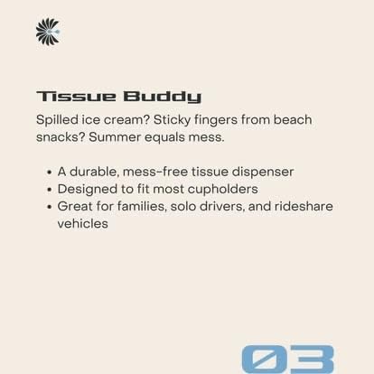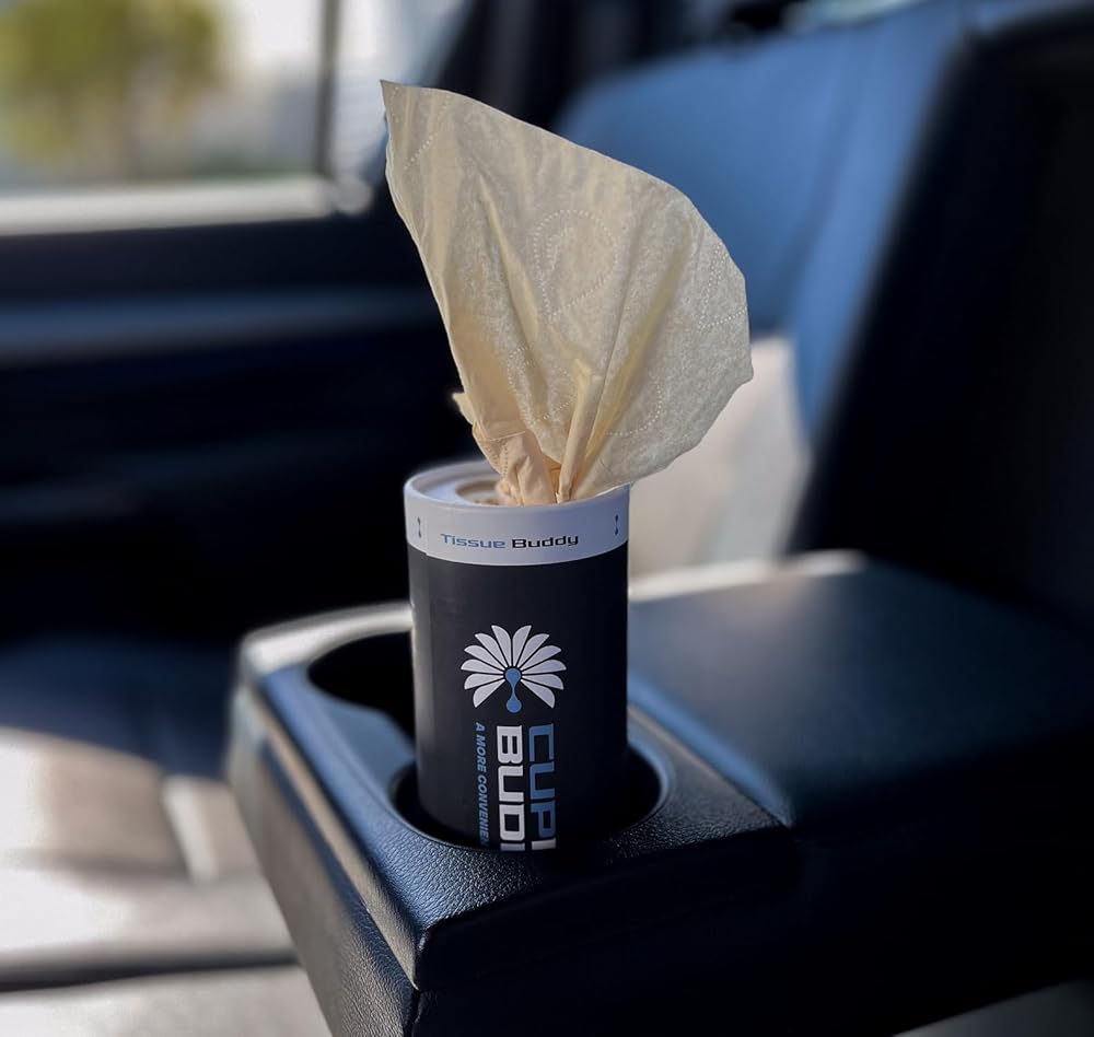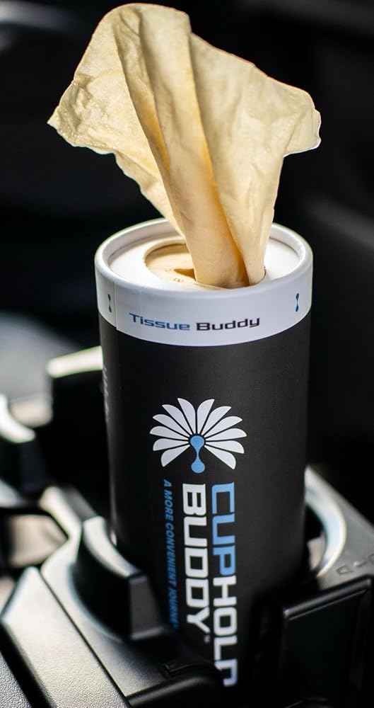 Sustainable Comfort for Everyday Travel Cupholdbuddy Bamboo Car Tissues are designed to bring convenience, reliability, and eco-friendly performance to your daily drive. Made from 3-ply 100% bamboo, these tissues provide a soft yet durable feel that's ideal for everyday use in the car, at work, or on the go. Bamboo is a rapidly renewable resource, making it a more sustainable alternative to traditional wood-pulp tissues. Our materials are responsibly sourced and FSC certified, so you can feel confident you're making a choice that supports healthier forests and a more sustainable future. Strong, Practical & Designed for Life on the Go The multi-layer design helps resist tearing while remaining gentle enough for everyday use. Whether you're handling quick clean-ups, sneezes, or spills, Cupholdbuddy tissues are built to be reliable when you need them most.Each compact tube measures approximately 6.3 inches tall and 2.7 inches in diameter, making it a great fit for most vehicle cup holders or glove compartments. Perfect for commutes, road trips, and busy lifestyles, these portable tissues keep convenience within easy reach. Eco-Friendly Inside and Out Sustainability is at the core of Cupholdbuddy. The refillable tube helps reduce waste, and the packaging is fully recyclable. By choosing bamboo tissues, you're supporting a lower-impact alternative designed with both performance and the planet in mind. A Smart Choice for Everyday Convenience Ideal for drivers, families, commuters, and anyone who values practical, eco-friendly products, Cupholdbuddy Bamboo Car Tissues offer dependable performance without compromising your environmental values.