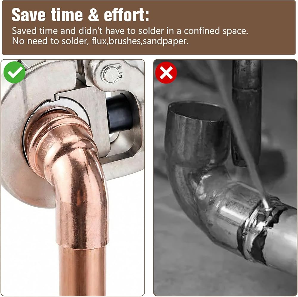 Easy Installation: Simply insert each copper pipes welding connector into place for a fast, tool-free fit. No need for tanks, hoses, threading tools, solder, or flux, making your setup quick, clean, and hassle-free.