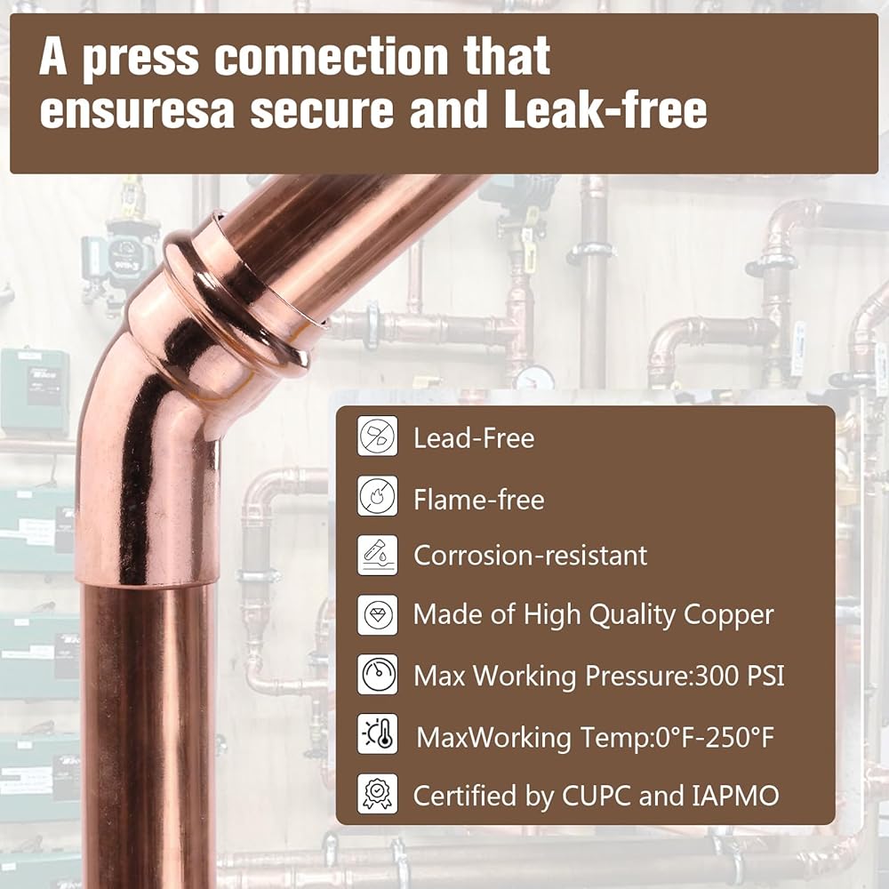 Universal Compatibility: Suitable for copper tubing v-elbow fittings in M, L, and K types, these elbows can be safely used in drinking water systems as well as residential, commercial, and general pipework applications.