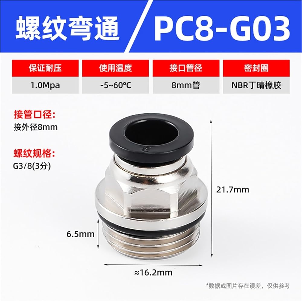 أسود/أبيض G-thread مستقيم من خلال موصل سريع PC8-02/10-02 المقابس مكون هوائي 1 قطعة (PC8-G03)