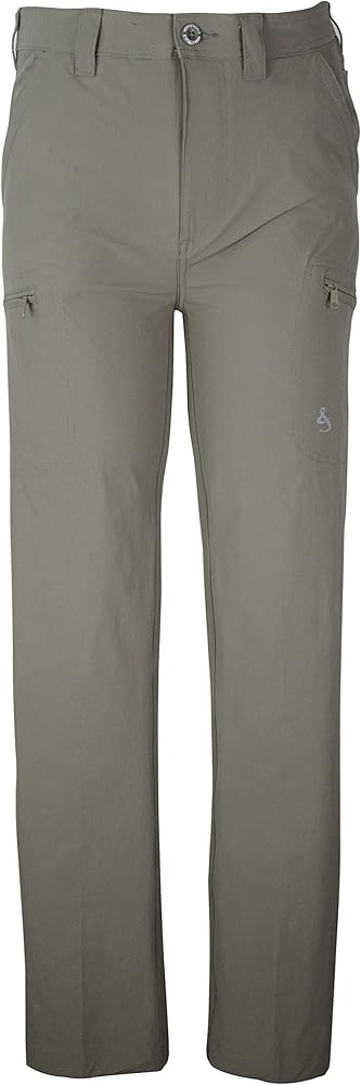 Our quick-dry nylon/spandex Ripstop Driftwood Khaki hybrid, fishing, active water lifestyle and travel pant with hi-performance 4-Way Stretch Woven Technology (stretches from left-to-right and top-to-bottom) can take anything you can dish out. This fabric delivers quick-drying properties, high breathability, increased maneuverability all bundled in to one lighter weight, yet durable pant. Add a back pocket, mobile phone pocket and side cargo pockets and you've got the perfect sun protection pant from sea to shore.