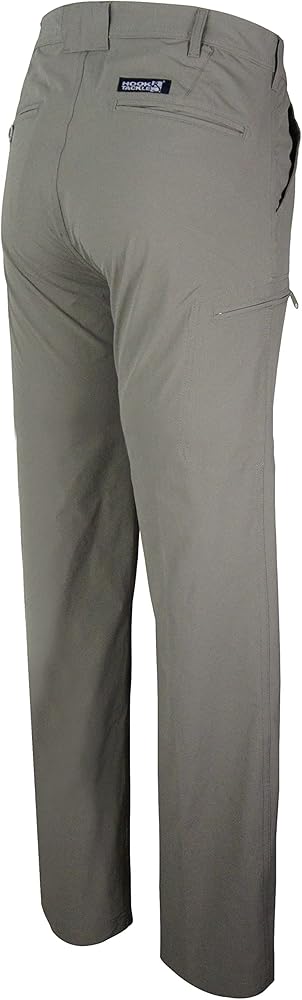 Our quick-dry nylon/spandex Ripstop Driftwood Khaki hybrid, fishing, active water lifestyle and travel pant with hi-performance 4-Way Stretch Woven Technology (stretches from left-to-right and top-to-bottom) can take anything you can dish out. This fabric delivers quick-drying properties, high breathability, increased maneuverability all bundled in to one lighter weight, yet durable pant. Add a back pocket, mobile phone pocket and side cargo pockets and you've got the perfect sun protection pant from sea to shore.