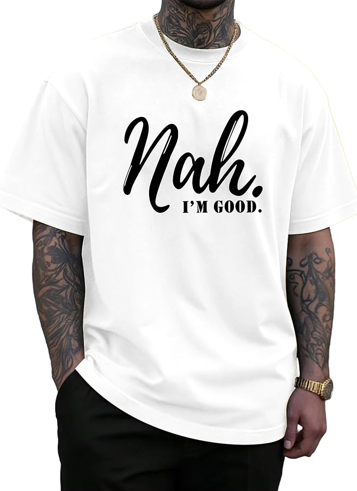 تي شيرت رجالي من KUYIGO برسومات مضحكة، أنا جيد. تي شيرت صيفي كاجوال بأكمام قصيرة in Kuwait