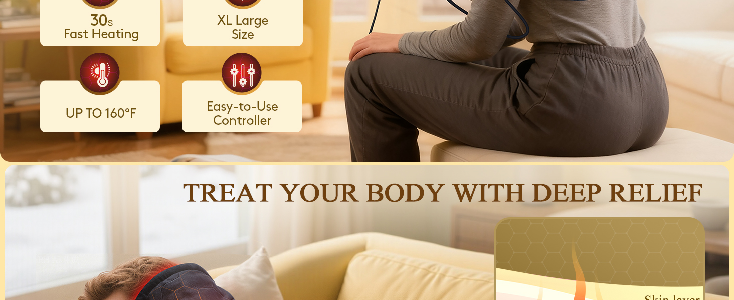 اختراق عميق للحرارة بالأشعة تحت الحمراء البعيدة لتخفيف الألم! على عكس وسادات التسخين العادية التي تعمل على تدفئة السطح فقط، فإن أسلاك التسخين المصنوعة من ألياف الكربون مزدوجة الطبقة من إنفارم تنبعث منها أشعة تحت الحمراء البعيدة مشابهة لأشعة الجسم، مما يسمح للحرارة العلاجية بالتغلغل بعمق تحت الجلد والوصول إلى كل عضلة. يساعد على تخفيف التيبس المستمر العميق تحت الجلد للحصول على راحة دائمة