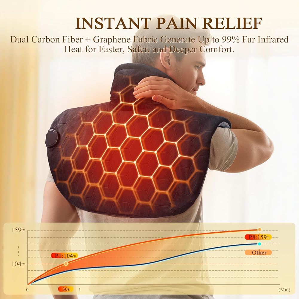 أبعاد كبيرة 60.96 سم × 50.8 سم تضمن ملاءمة مثالية لجميع أنواع الجسم! يأتي غلاف تسخين الرقبة والكتف الخاص بنا بتصميم رقبة مرتفع يساعد على الحفاظ على الدفء. توفر الأشرطة الجانبية القابلة للتعديل ملاءمة قابلة للتخصيص وتعانق الجسم للحصول على أقصى قدر من الراحة. بوزن 1.2 رطل فقط، فإن تصميمه خفيف الوزن يجعل من السهل ارتداؤه، حتى بالنسبة للمستخدمين المسنين