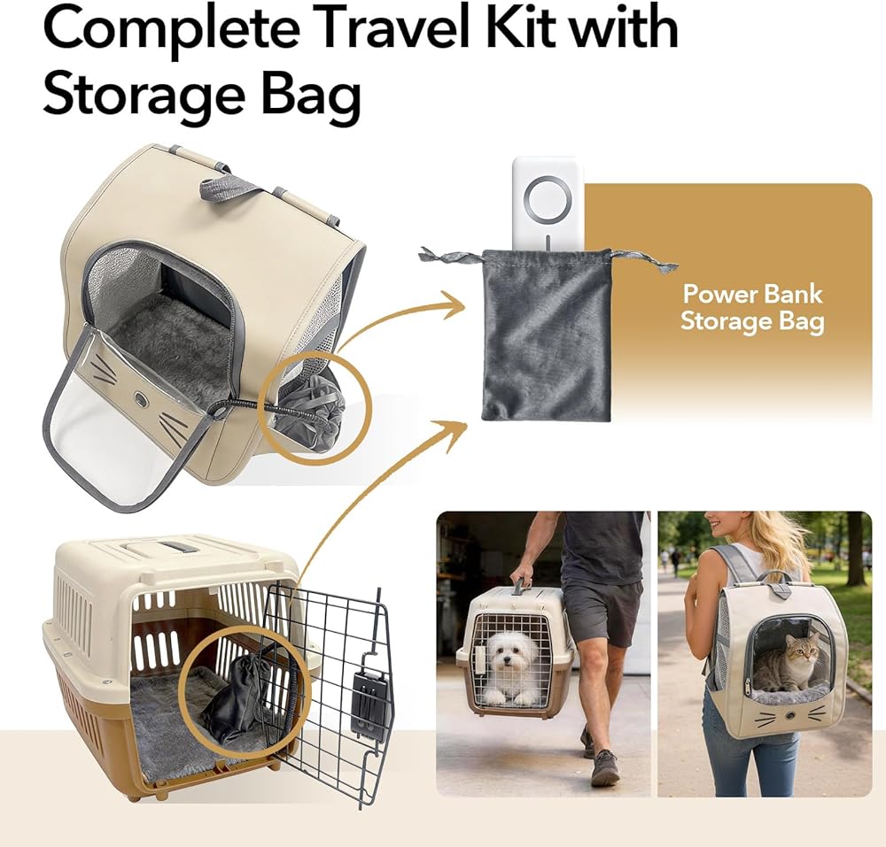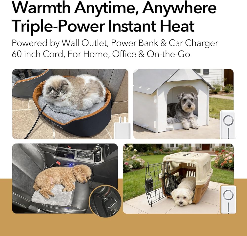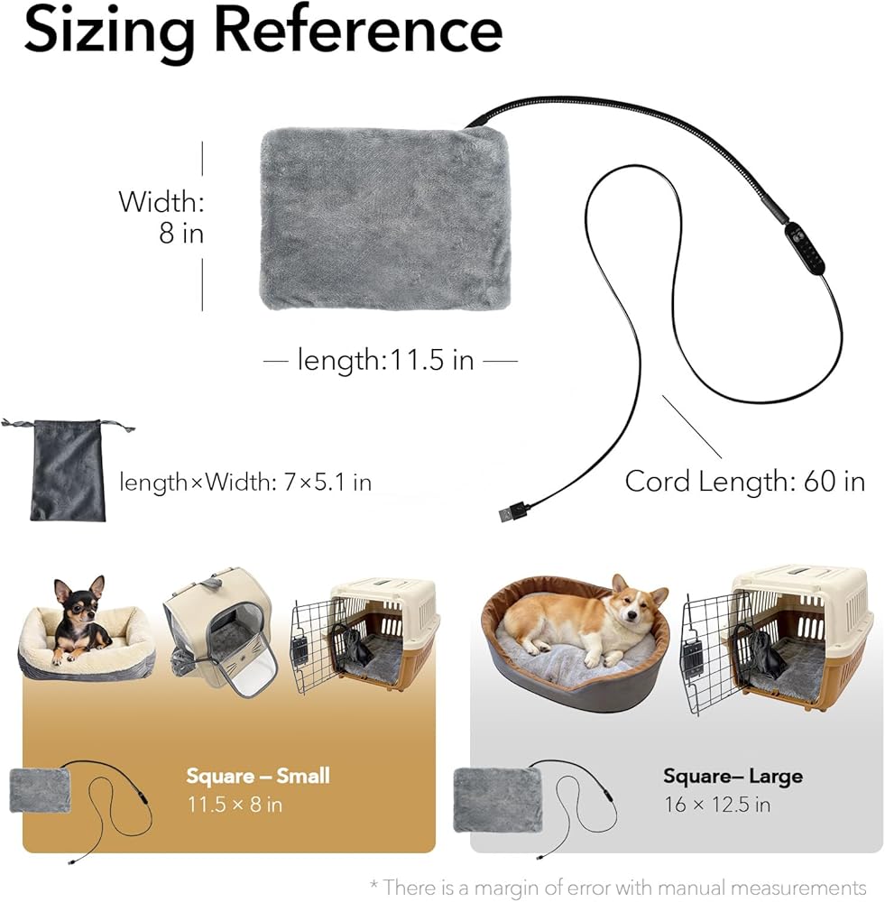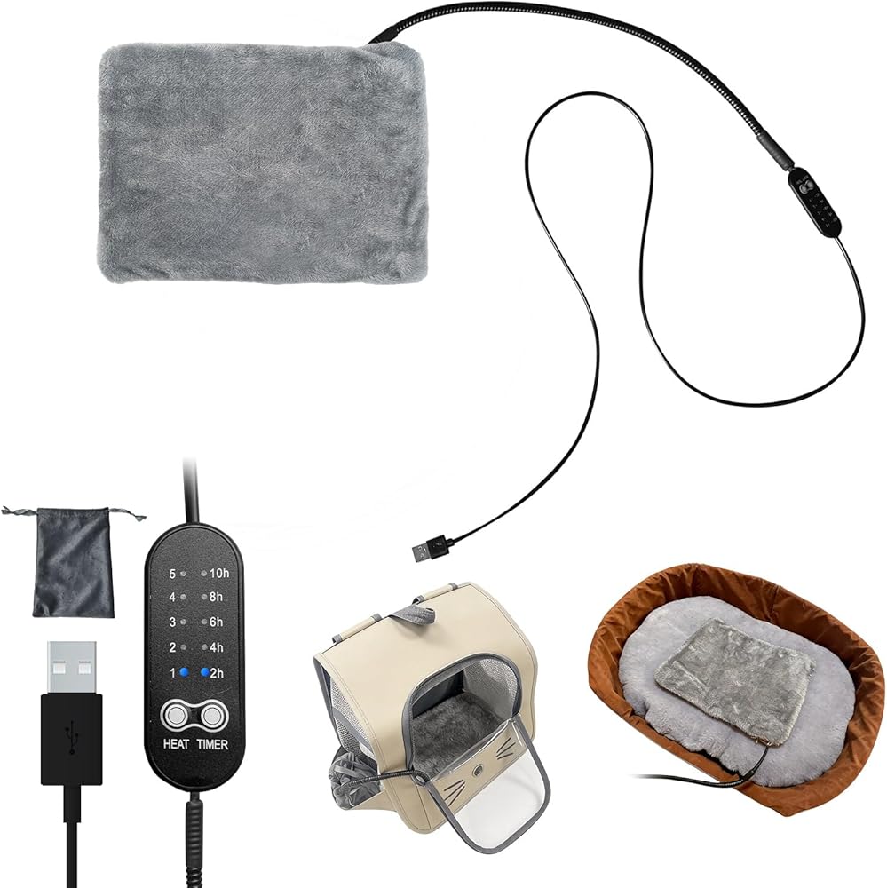 وسادة تدفئة USB للقطط والكلاب في الأماكن المغلقة/السفر/الخارج - حقيبة بنك الطاقة وغطاء قابل للغسل، سخان مقاوم للماء آمن 5 فولت، 5 درجات حرارة ومؤقت، إيقاف تلقائي عند 140 درجة فهرنهايت، بطارية/جدار/سيارة تعمل (8 بوصة × 11.5 بوصة)