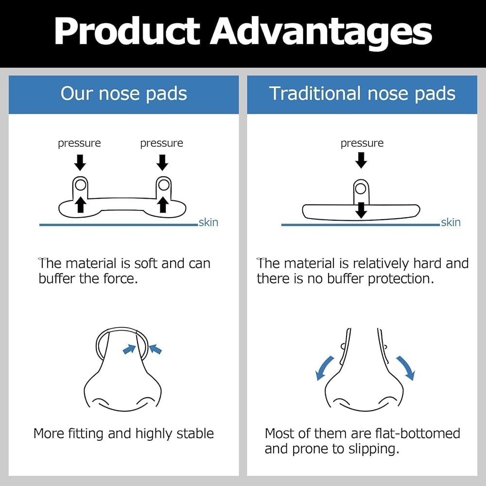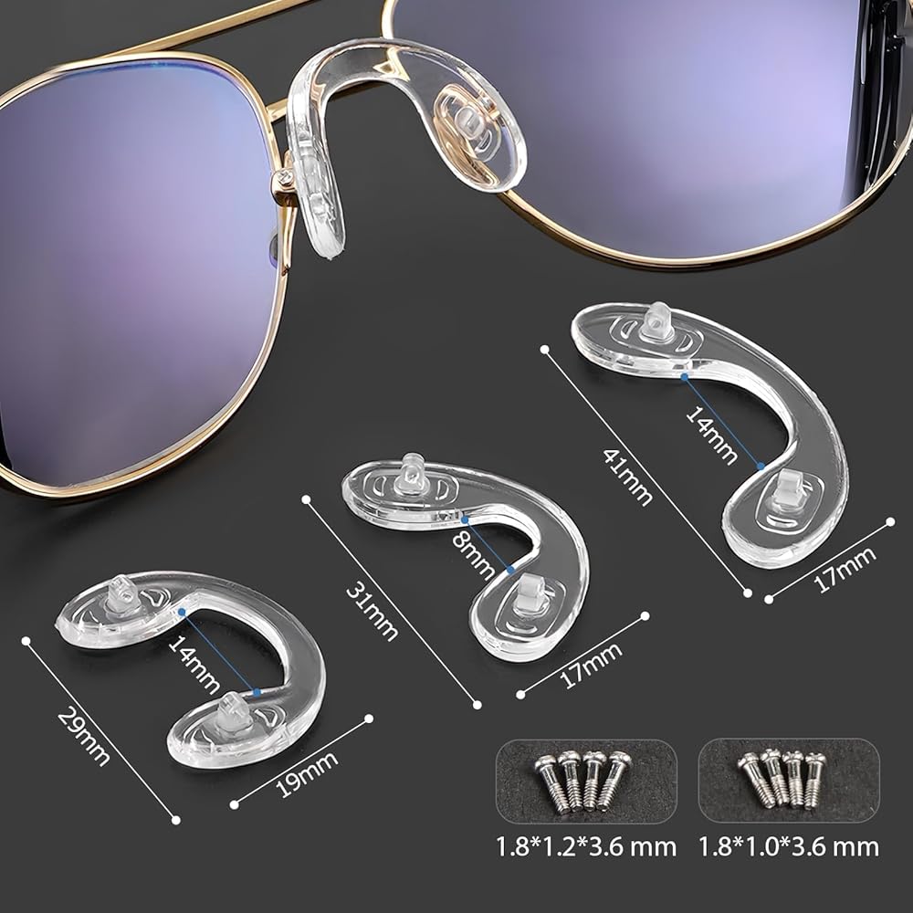 ثلاثة نماذج للاختيار من بينها: تتضمن هذه المجموعة وسادات أنف على شكل حرف U بثلاثة أحجام: كبير ومتوسط وصغير، مناسبة لمعظم النظارات ومناسبة أيضًا لاحتياجات الأسرة