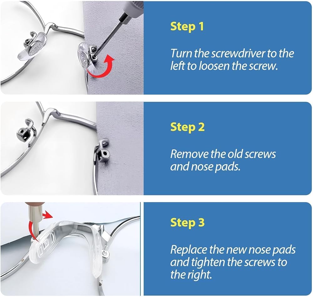 نوعان من البراغي: تشتمل هذه المجموعة على براغي دعم مختلفة السُمك، مناسبة لمعظم النظارات وتقلل من متاعب الاختيار