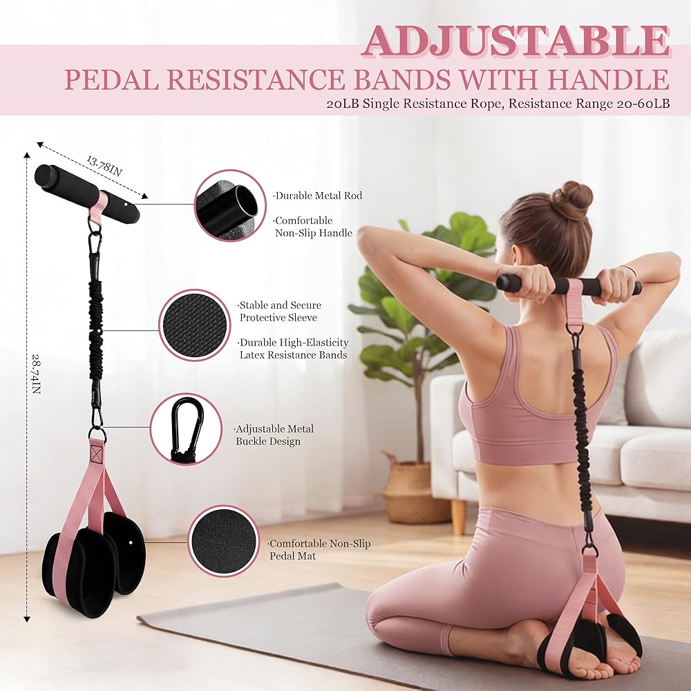 HIMSPORNER حزام مقاومة دواسة قابل للتعديل مع مقبض، عصابات مقاومة الكاحل مع الأصفاد، شريط مقاومة الشكل 8، معدات تمرين للخصر، الذراع، القلب/ABS، الساق، العلاج الطبيعي، اليوغا، البيلاتيس
