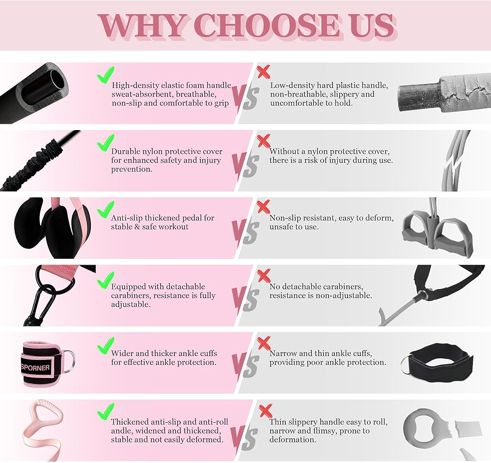 [معدات اللياقة البدنية المقاومة للجسم بالكامل] تساعدك معدات تمرين المقاومة متعددة الوظائف هذه على تشكيل وتقوية البطن والخصر والذراعين والساقين والصدر والظهر والعضلات الألوية بشكل أكثر كفاءة وشمولاً. مثالي لتدريبات المقاومة واليوجا والعلاج الطبيعي، فهو يساعد على التعافي ويحسن المرونة. يمكنها استبدال العديد من أجهزة الصالة الرياضية لتحقيق تأثير تمرين الجسم بالكامل، مما يجعل التمرين أكثر ملاءمة.