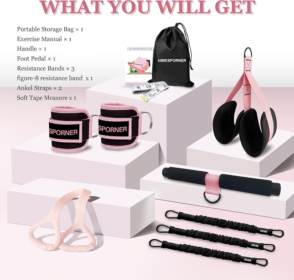 【التمرين في أي وقت وفي أي مكان】يحتوي على مقبض واحد، ودواسة قدم واحدة، وحزامين للكاحل، و3 أشرطة مقاومة، وشريط مقاومة على شكل ثمانية، وشريط قياس ناعم، ودليل واحد، وحقيبة تخزين. تسمح هذه المجموعة من معدات التمرين بتمرين الجسم بالكامل مع كونها قابلة للحمل للغاية. سواء كنت في المنزل أو الذهاب إلى صالة الألعاب الرياضية أو السفر، فلن يؤثر ذلك على خطة التمرين واحتياجات تشكيل الجسم.