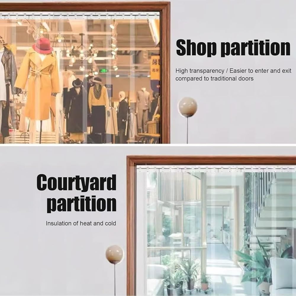 • Transparent PVC Strip Curtain: Our Clear PVC Strip Curtain features a sleek, Block Design that offers visibility while effectively reducing noise and blocking dust. This versatile curtain helps maintain your space's climate by preventing cool air from escaping, making it ideal for both home and commercial use. Enhance your environment with this practical solution.