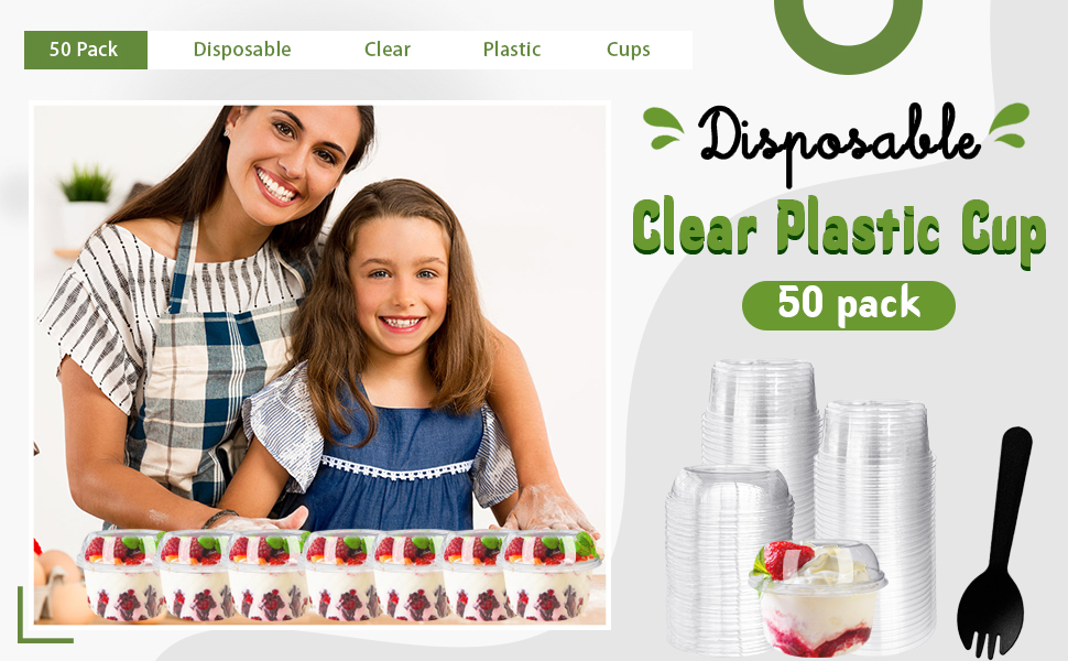 • كافية للاستخدام: تحتوي كل عبوة على 50 كوبًا بلاستيكيًا شفافًا للاستعمال مرة واحدة، و50 غطاءً غير مثقوب، و50 ملعقة سوداء، مما يضمن حصولك على الكثير من الإمدادات لمناسبتك، ومثالية للاستخدام اليومي في المنزل، وإعداد حلويات الآيس كريم الصيفية للأقارب أو الأصدقاء أو الأطفال.