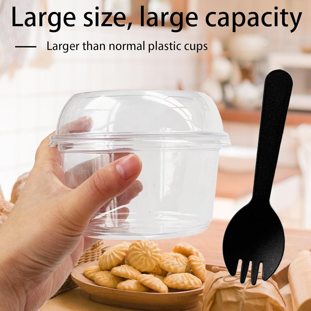 • سهل الاستخدام والتخزين: تم تصميم غطاء القبة بشكل مريح لحماية سلامة المحتويات مع تسهيل على العملاء أو الضيوف الاستمتاع بالوجبات الخفيفة أو المشروبات؛ هذه الأكواب البلاستيكية الشفافة التي تستخدم لمرة واحدة بسعة 12 أونصة قابلة للتكديس وموفرة للمساحة، مما يضمن تخزينًا صغيرًا عند عدم الاستخدام.