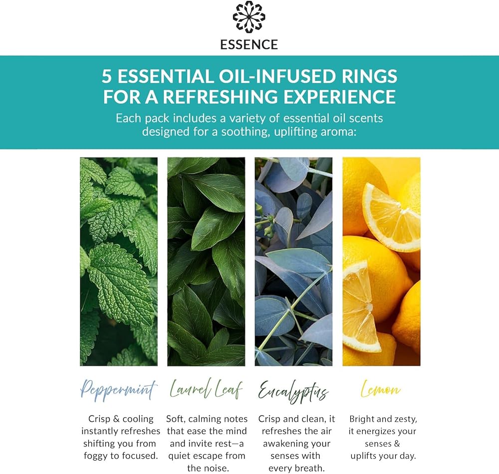 • Infused With 100% Pure Essential Oils – Each Essence nose diffuser ring is infused with high-quality essential oils using advanced scent-retention technology, giving you long-lasting fragrance all day