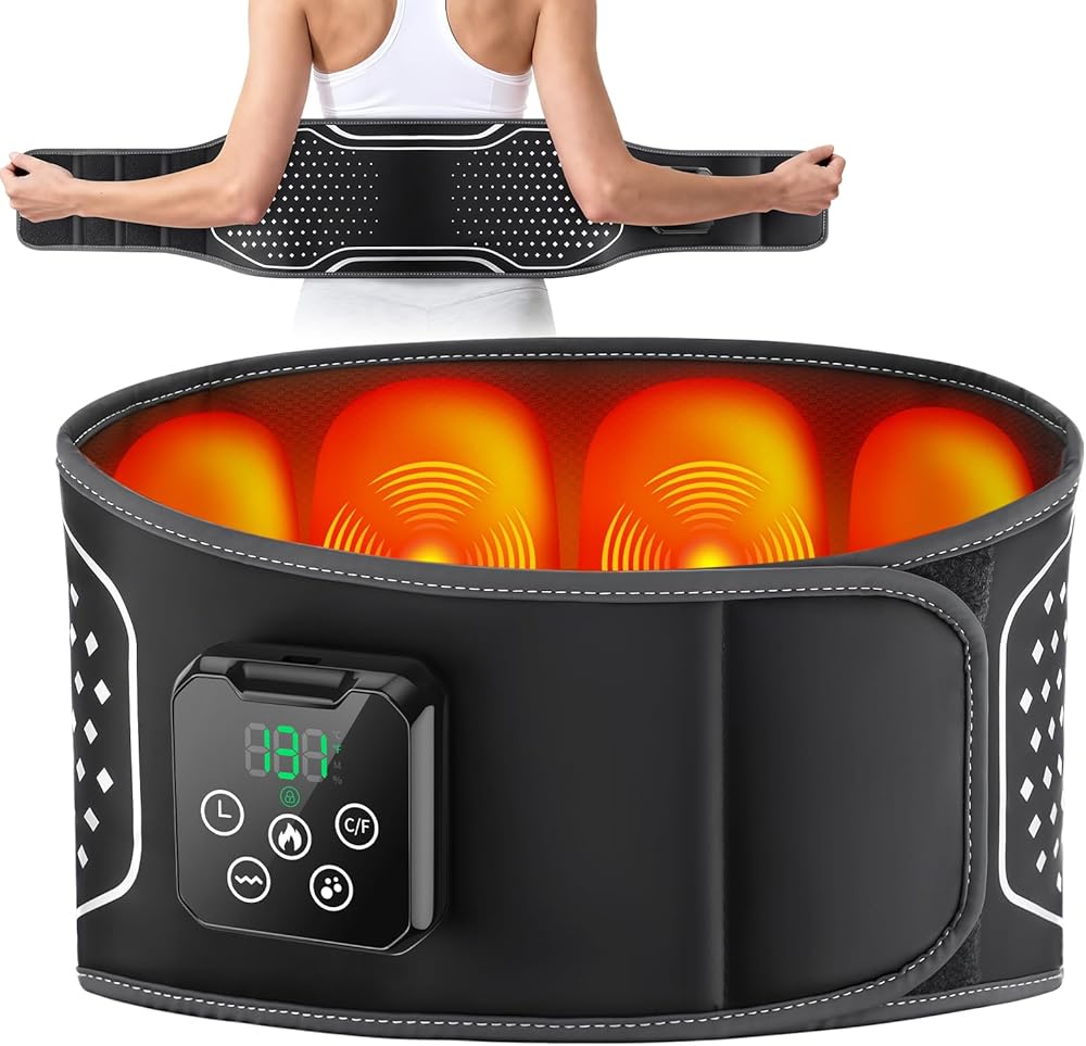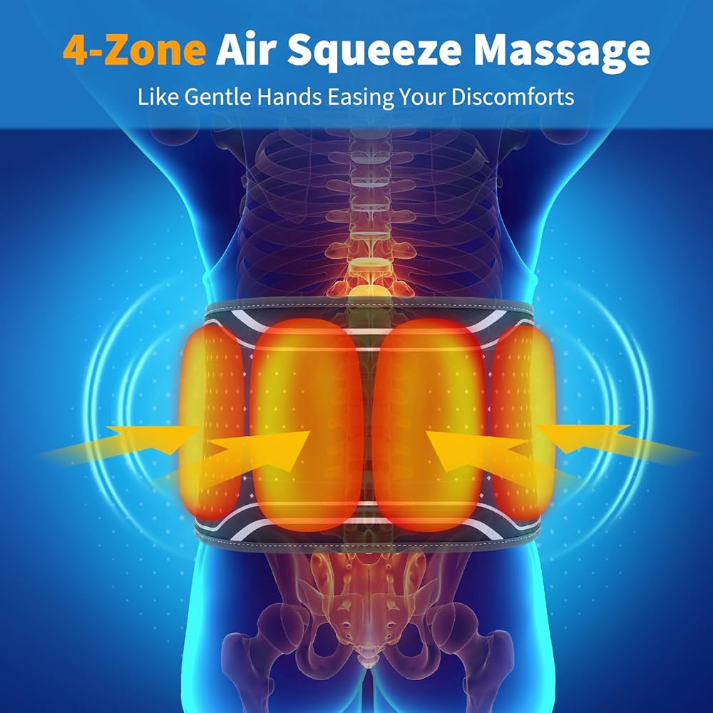 وسادة تدفئة الظهر مع جهاز تدليك - حزام تدليك الظهر المُسخن مع وسادات ضغط الهواء، وسادة تدفئة للظهر مع بطارية 4000 مللي أمبير في الساعة - هدايا للنساء والرجال والعائلة