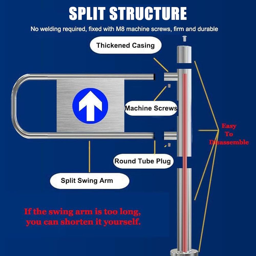 supermarket revolving door,Introducing the Swing Entrance Door, an ideal solution often referred to as a warehouse pedestrian door, industrial swing door, or metal swing door. This versatile entryway is designed for diverse environments, including supermarkets, libraries, decorative goods stores, and shopping malls, enhancing both functionality and safety. **Key Features:** 1. **One-Way Functionality:** The swing door is designed for efficient traffic management, automatically closing after being pushed. This feature is particularly beneficial in high-traffic areas, helping to maintain a steady flow. 2. ** Construction:** Built from premium stainless steel, this door withstands the rigors of frequent use in bustling locations like warehouses and shopping centers, ensuring longevity and reliability. 3. **Automatic Rebound:** Featuring a high-elasticity spring, this door opens easily with a gentle push and closes automatically, providing a user-friendly experience without the need for electrical power. 4. **Safety and Stability:** The door comes with a secure bottom expansion screw for installation, an anti-dumping design, and a substantial load-bearing capacity, ensuring safe operation in various settings. 5. **Customizable Width:** Tailored to meet different passage requirements, the door is available in various widths (50/60/70/80/90/100 cm), making it an excellent choice for supermarket entrances and logistics pathways. **Specifications:** - **Product Name:** Swing Entrance Door - **Material:** Stainless Steel Tube - **Color:** Silver - **Height:** 100 cm - **Installation:** Drilling installation - **Suitable For:** Warehouses, construction sites, garages, parking lots, and work areas. **Package Includes:** - 1 x One-Way Swing Gate - N x Installation Accessories For any questions or assistance, please reach out—we're committed to providing support within 24 hours. Upgrade your space with the Swing Entrance Door and enjoy improved functionality