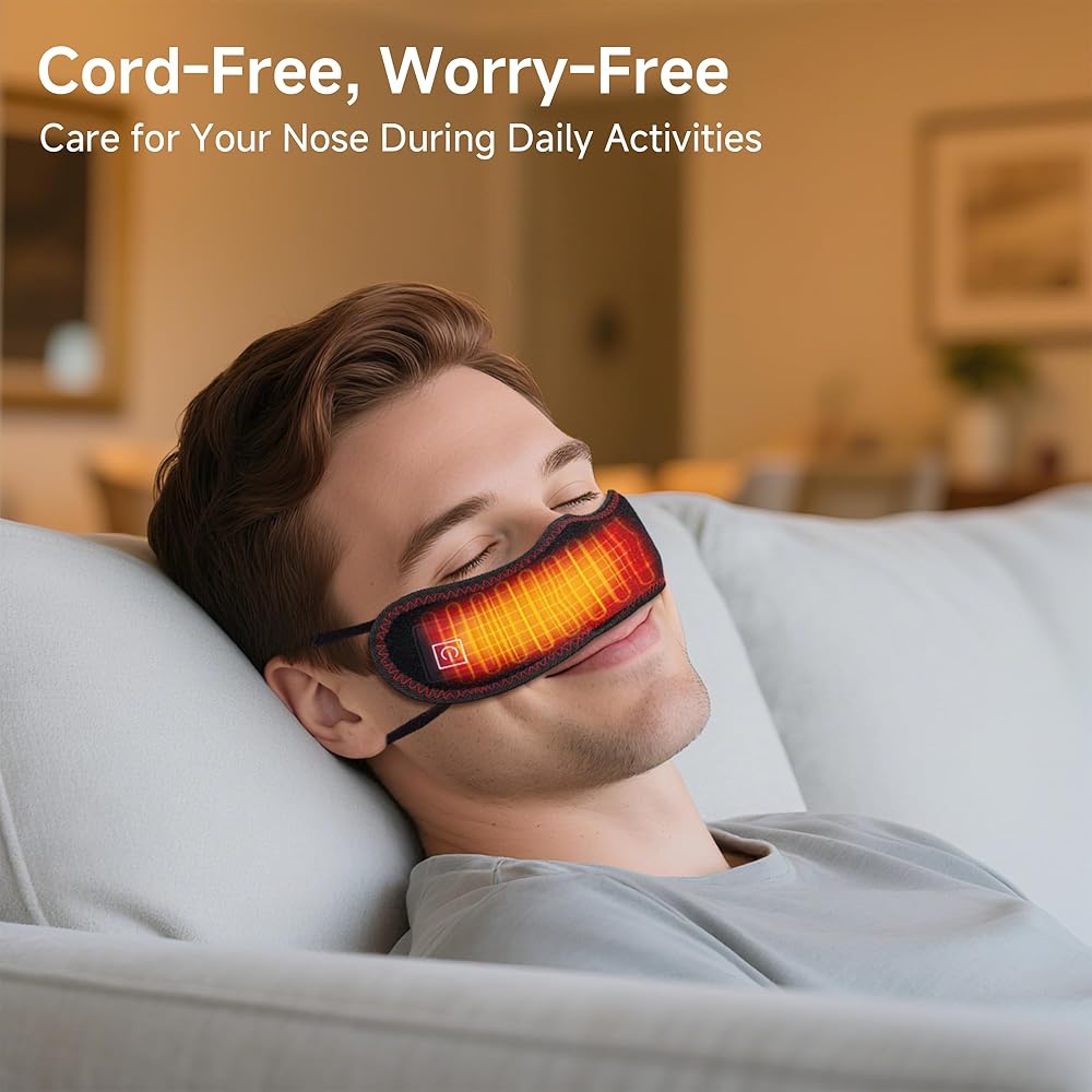 قناع أنف لاسلكي مُسخن لبيئات الهواء الجاف والتيار المتردد، 16 خرزة ضوء أحمر، 3 مستويات للحرارة، قابل لإعادة الشحن عبر USB، غطاء أنف محمول للسفر والراحة اليومية