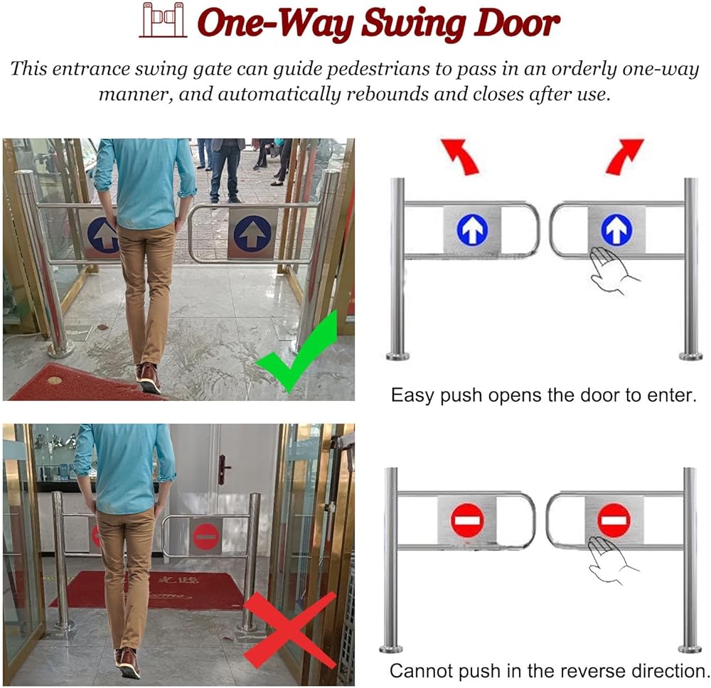 The One-Way Swing Door enhances foot traffic flow with its innovative rotating mechanism, enabling pedestrians to move in one direction. This design minimizes congestion and prevents reverse movement. Automatically returning to its original position after each use, it ensures safe transitions in busy environments. Perfect for Public Spaces and High-Traffic Lons.