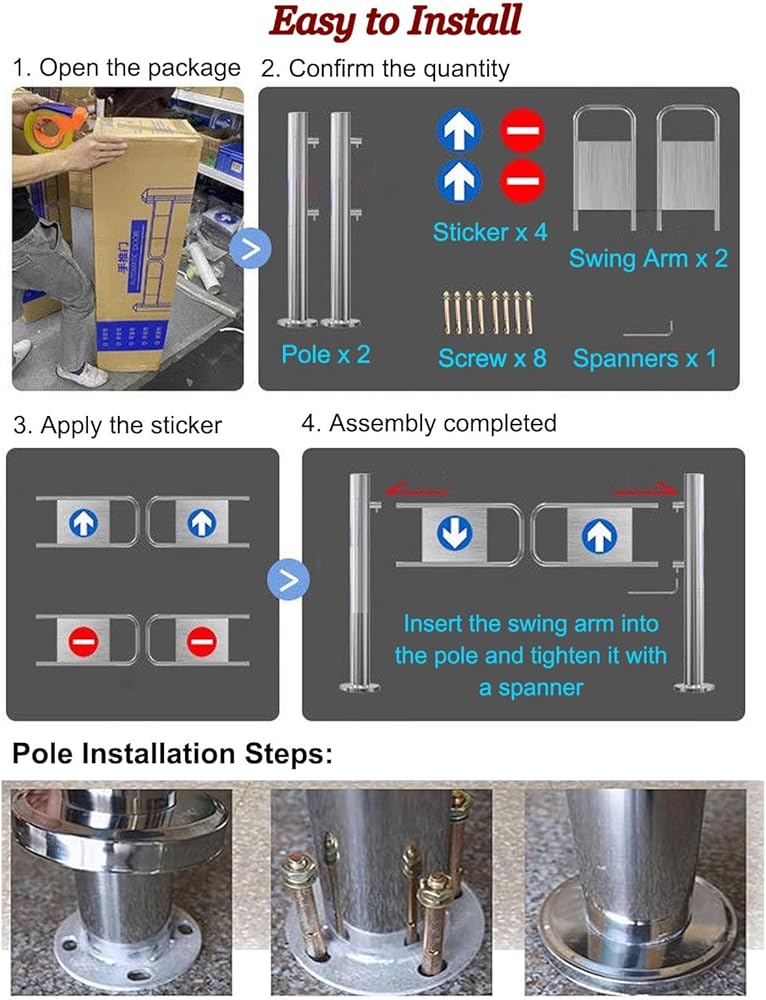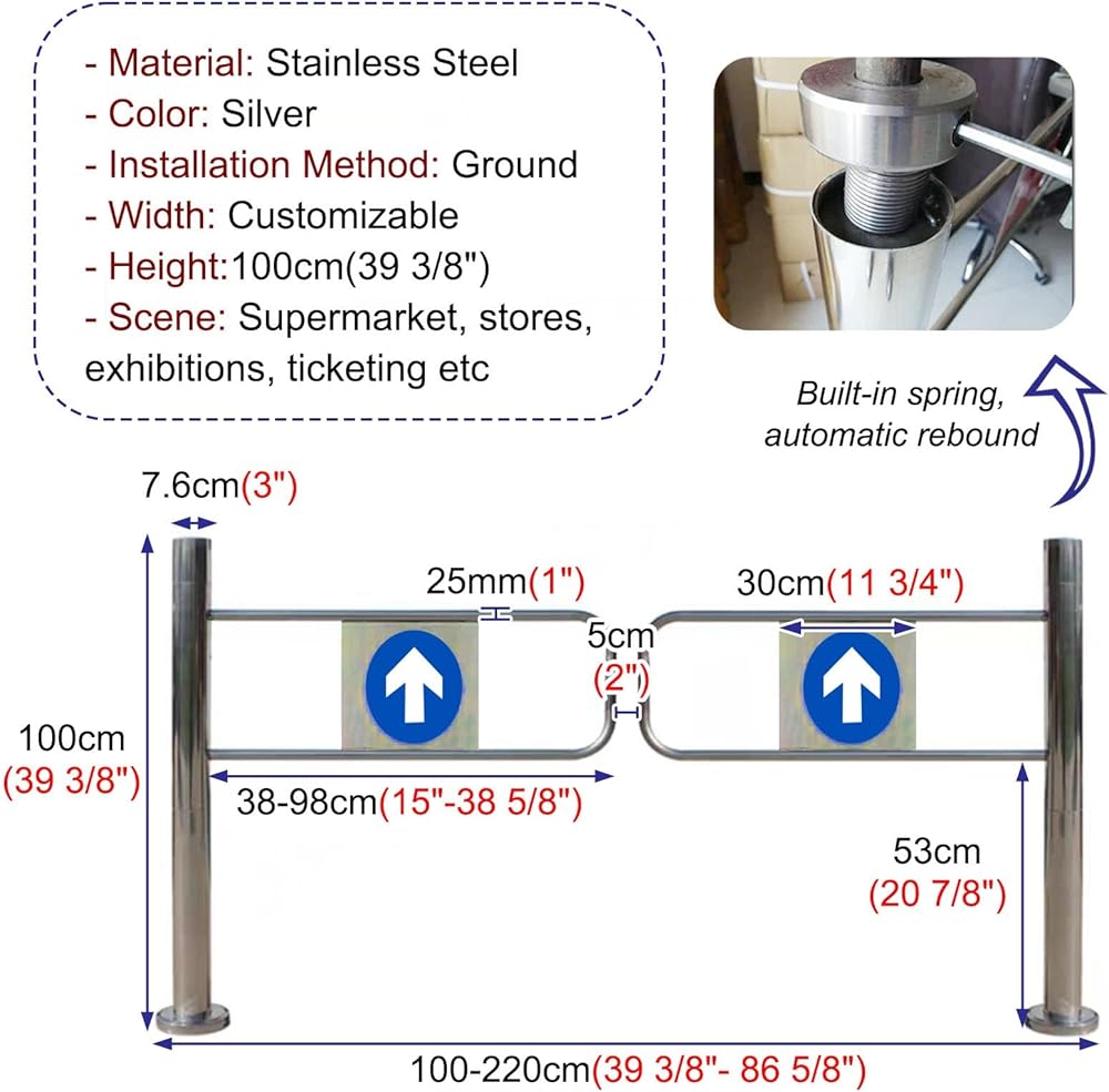 【Durable Stainless Steel】: This Entrance Exit Gate offers strong stainless steel construction that resists rust and wear. Its easy-to-clean surface is perfect for high-traffic areas. With 100 cm/39.4" high door columns, it ensures secure access and functionality, making it suitable for both residential and commercial use.