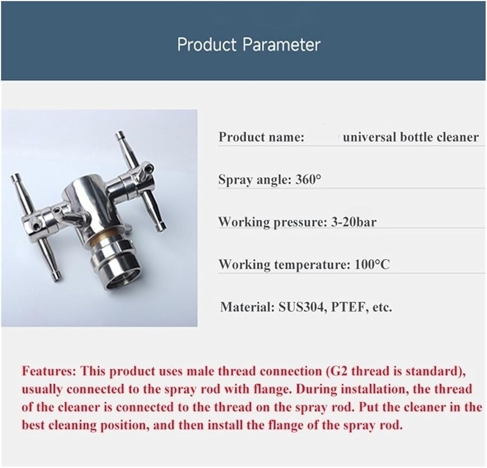 This product uses male thread connection (G2 thread is standard), usually connected to the spray rod with flange. During installation, the thread of the cleaner is connected to the thread on the spray rod, the cleaner is placed in the best cleaning position, and then the flange of the spray rod is installed.