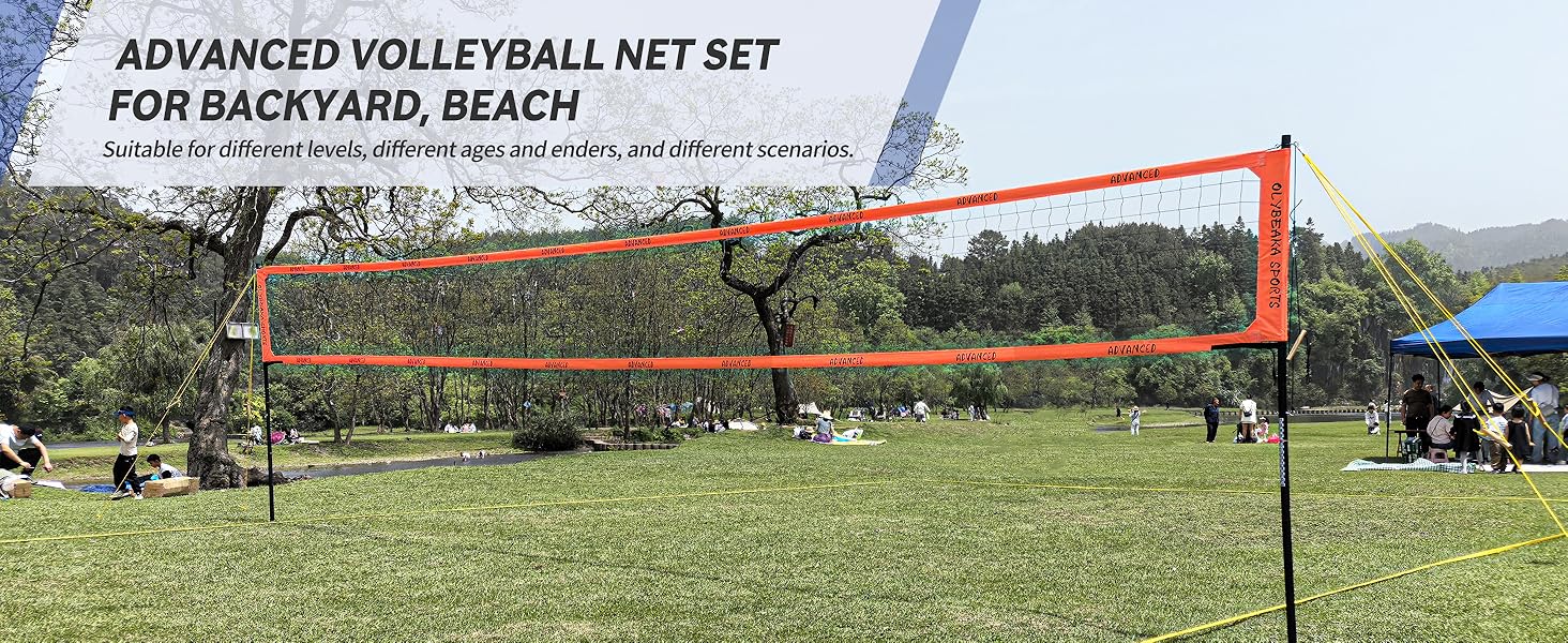 𝐂𝐨𝐦𝐩𝐥𝐞𝐭𝐞 𝐆𝐚𝐦𝐞-𝐑𝐞𝐚𝐝𝐲 𝐀𝐜𝐜𝐞𝐬𝐬𝐨𝐫𝐢𝐞𝐬: Includes high quality PU volleyball(Value $19.99), air pump with 10in dual-needle, and 1in anti-UV boundary tape (1.2mm thick for enhanced wind resistance). Boundary tape defines the court, while premium PU ball ensures consistent bounce for outdoor & beach volleyball matches.