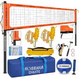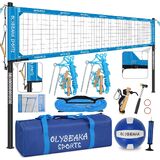 مجموعة شبكة احترافية للكرة الطائرة في الهواء الطلق للشاطئ في الفناء الخلفي مع أعمدة ألومنيوم مقاس 1.7 بوصة، وشبكة HDPE 45 طبقة، وكرة طائرة من البولي يوريثان ومضخة، وخط حدودي، وحقيبة حمل كبيرة - مضادة للترهل وسهلة الإعداد