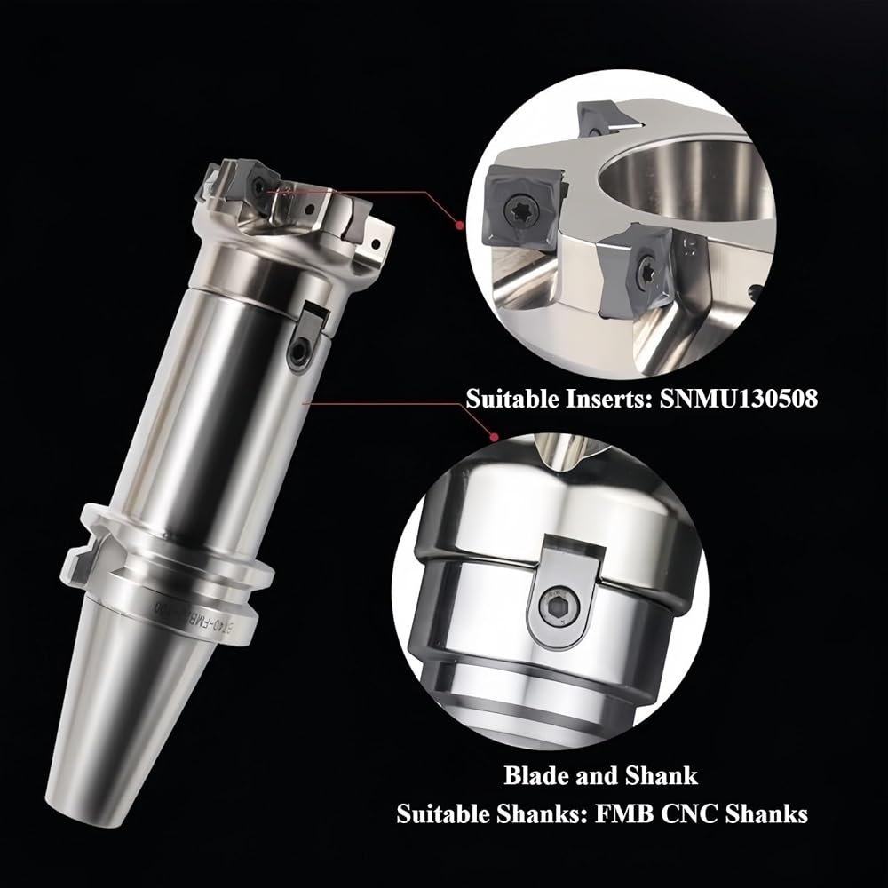 Package Include: 1 piece of 0.87" x 2" 88° Indexable Face Mill, inserts and shank not included. Suitable for SNMU130508 inserts and FMB shank.