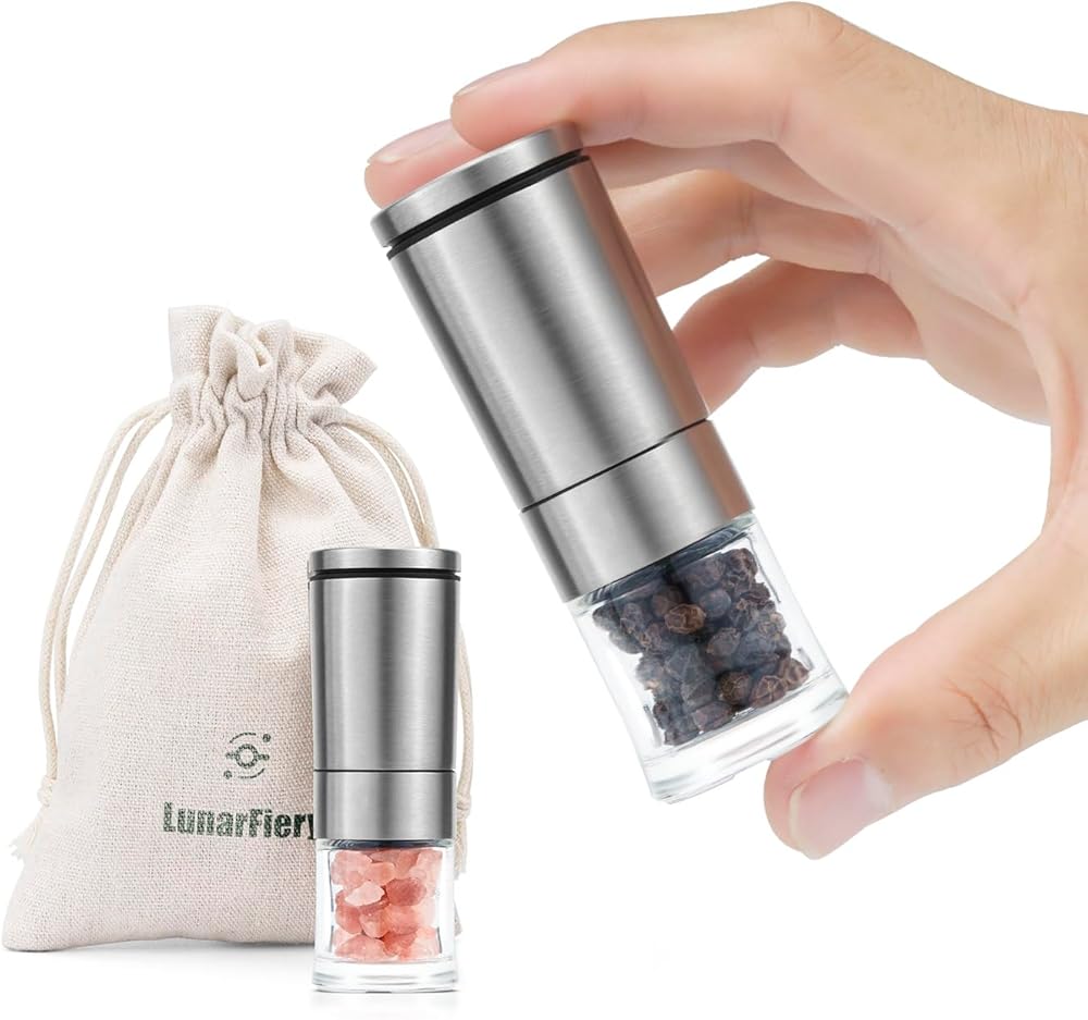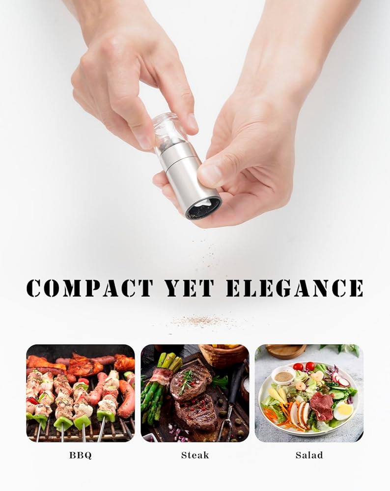 Travel Mini Salt and Pepper Grinder Set! - with small and cute look make salt and pepper grinder convenient for kitchen or outdoors use. THEY ARE MINI GRINDERS,PLEASE CONFIRM THE SIZE BEFORE YOU MAKE A ORDER