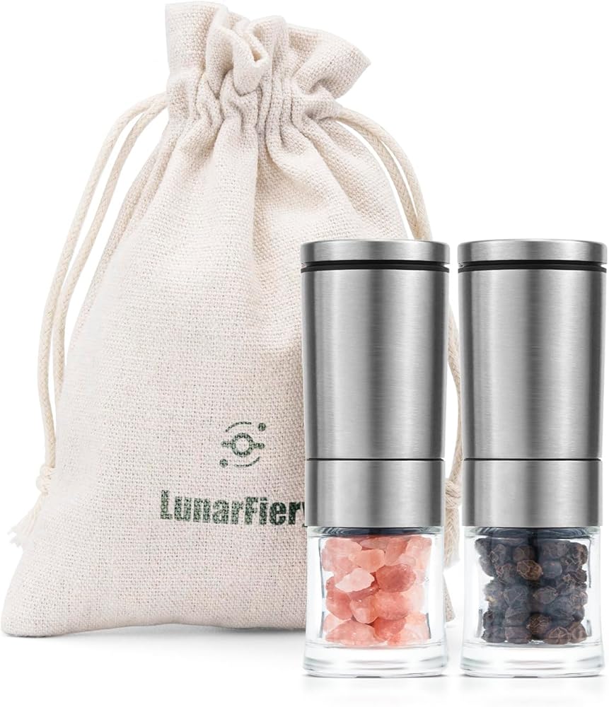 LunarFiery grinder is made of 304 stainless steel and clear glass to let you know when it's time to refill, Keep your spices fresh by using the included steel lids to cap off each mill. *Salt and Pepper Not Included