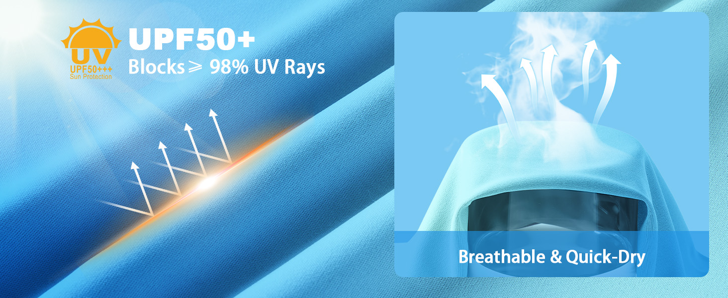 حماية بعامل حماية من الأشعة فوق البنفسجية 50+: مصنوع من نسيج بعامل حماية من الأشعة فوق البنفسجية 50+، ويحميك بشكل فعال من 98% من الأشعة فوق البنفسجية فئة A والأشعة فوق البنفسجية فئة B؛ استمتع بصيد الأسماك أو السباحة أو المغامرات الخارجية مع حماية موثوقة من أشعة الشمس تحافظ على سلامة بشرتك أثناء التعرض لأشعة الشمس لفترة طويلة
