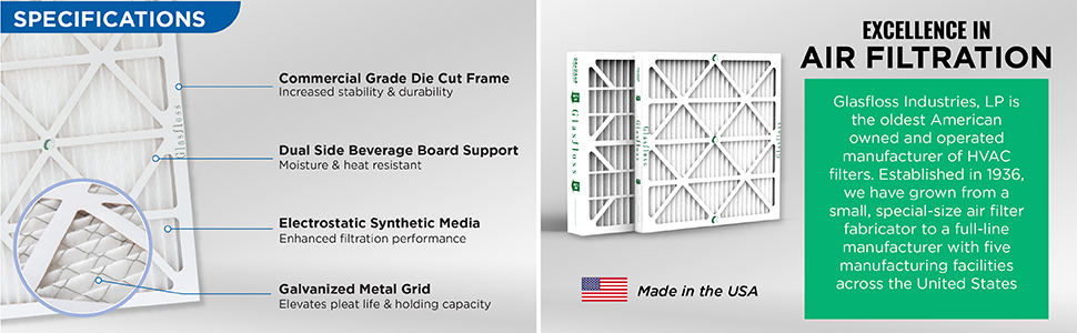- كفاءة MERV 10 مع تدفق الهواء MERV 8 وانخفاض الضغط