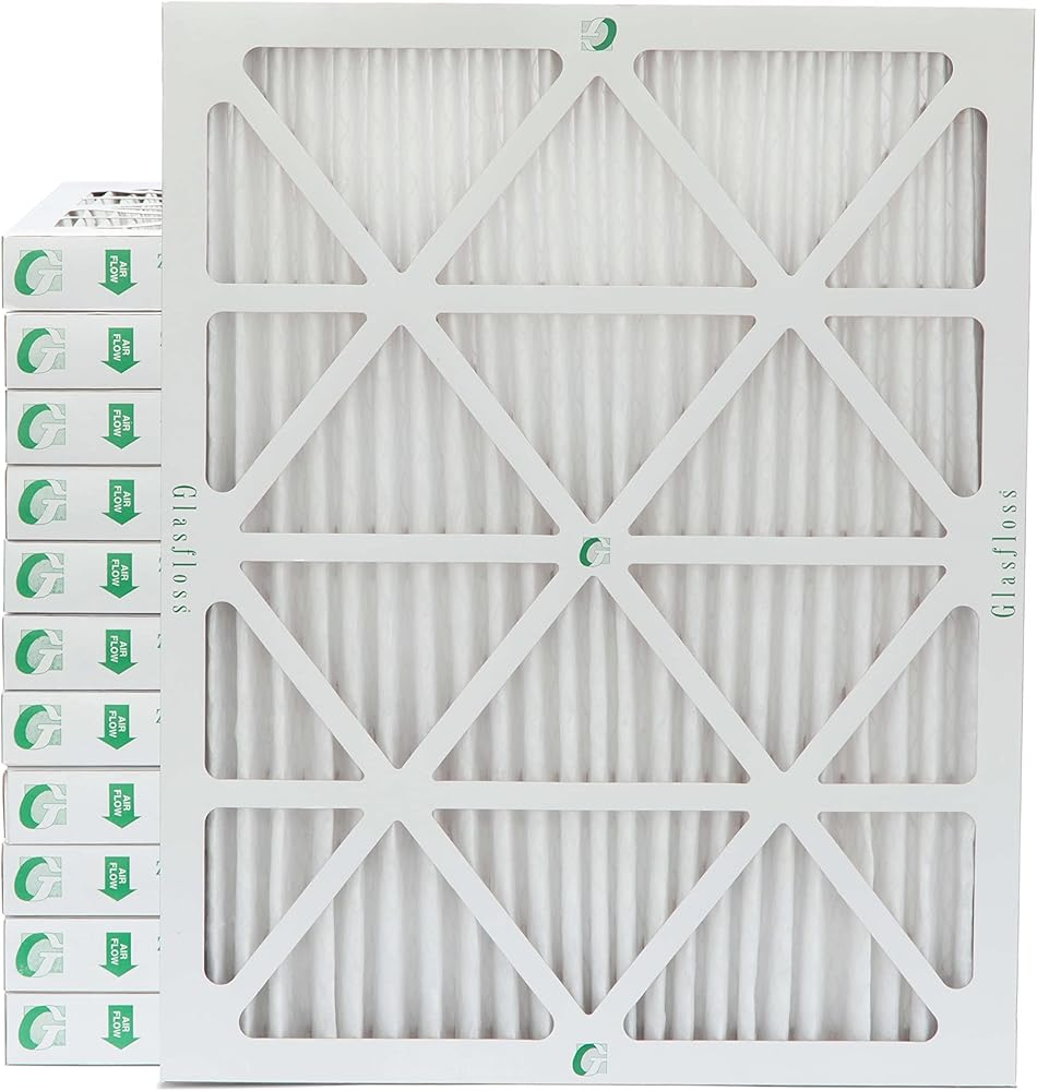 جلاس فلوس ZL 20x25x2 MERV 10 مرشحات للتكييف والفرن. 12 عبوة. الحجم الفعلي: 19-1/2 × 24-1/2 × 1-3/4
