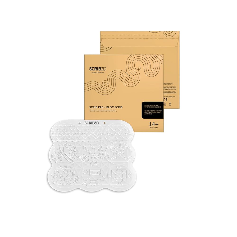 بساط قلم ثلاثي الأبعاد من السيليكون SCRIB3D - لوحة رسم مرنة مقاومة للحرارة على الوجهين مع أشكال وأنماط - لوحة تدريب الاستنسل للمبتدئين والصناع - مصممة للعمل مع جميع أقلام SCRIB3D