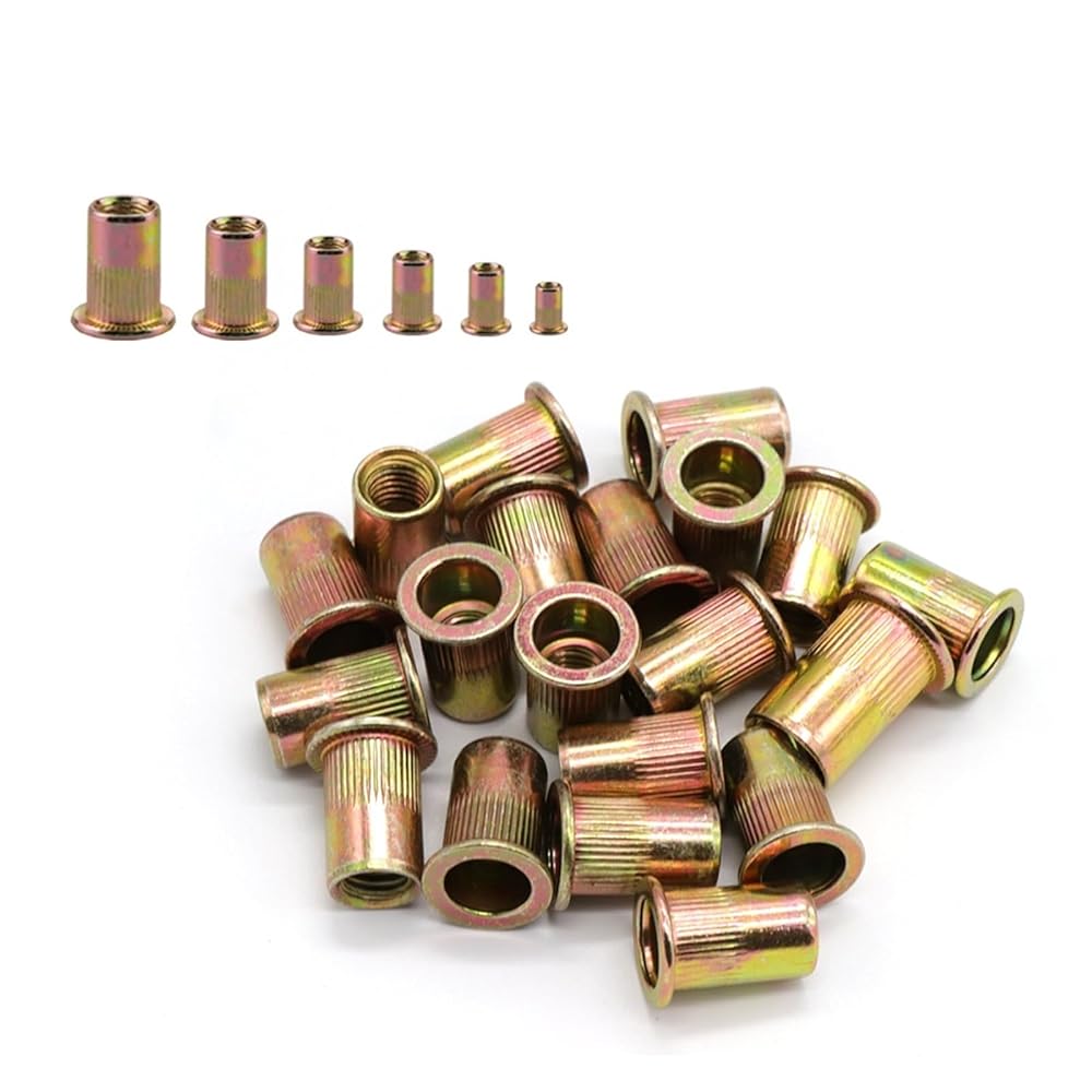 - SFCHEN 20/50pcs M3 M4 M5 M6 M8 M10 M12 Rivet Nuts Flat Head Threaded Insert Nutsert Cap For Riveter Nut Gun Zinc Plated Carbon Steel
