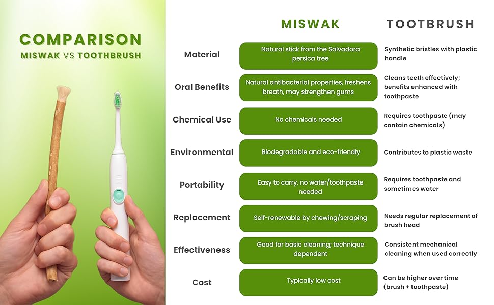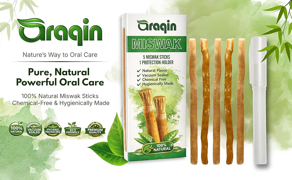 مصادر طبيعية: يتم حصاد أعواد المسواك (أعواد فرشاة الأسنان الأفريقية) من فروع سلفادورا بيرسيكا (شجرة بيلو)؛ بديل خالٍ من المواد الكيميائية وقابل للتحلل البيولوجي لفرشاة الأسنان البلاستيكية