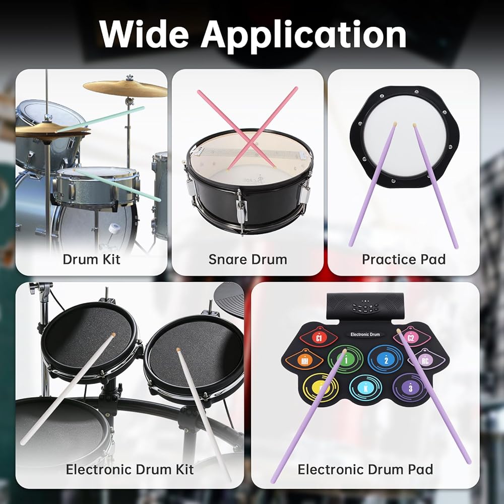 - Versatile Musical Fit: They are also well-suited for marching bands and drum corps, and are designed for drum sets, snare drums, electronic drums, electronic drum pads, and practice pads.