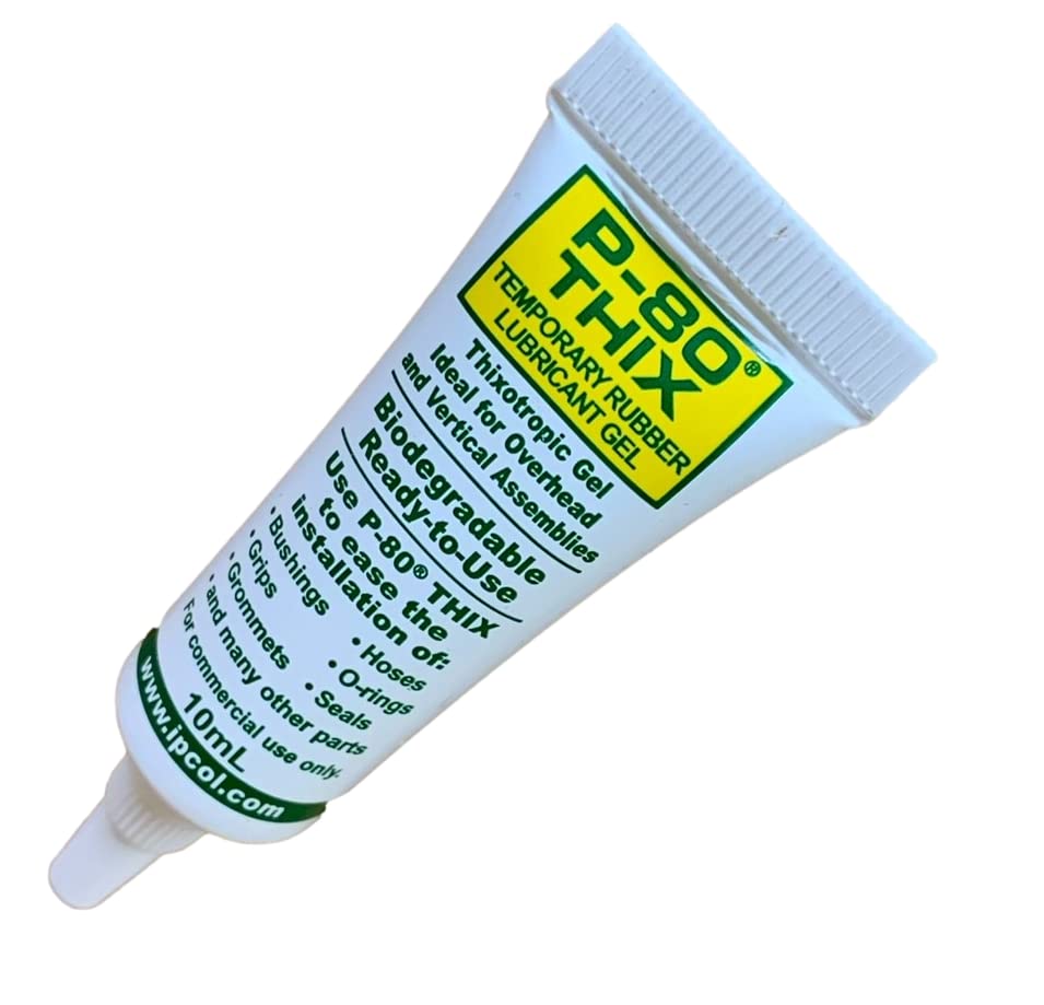 A GEL version of P-80 for overhead and vertical applications, P-80 THIX Lubricant GELis a unique assembly aid specifically formulated to provide temporary lubrication that makes rubber easy to install, remove, or otherwise manipulate. P-80's temporary nature is a result of its chemical composition. The lubricant provides a high degree of lubricity when wet, but because it does not contain any silicon or other persistent ingredients, once dry the slipping action goes away. P-80 products are also free of petroleum distillates, so they will not dry, crack or otherwise harm rubber parts. P-80 is compatible with most metals, plastics, and natural and synthetic elastomers.