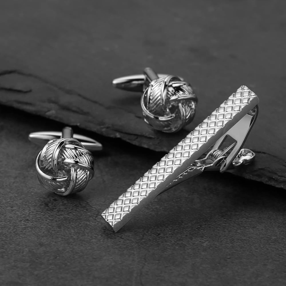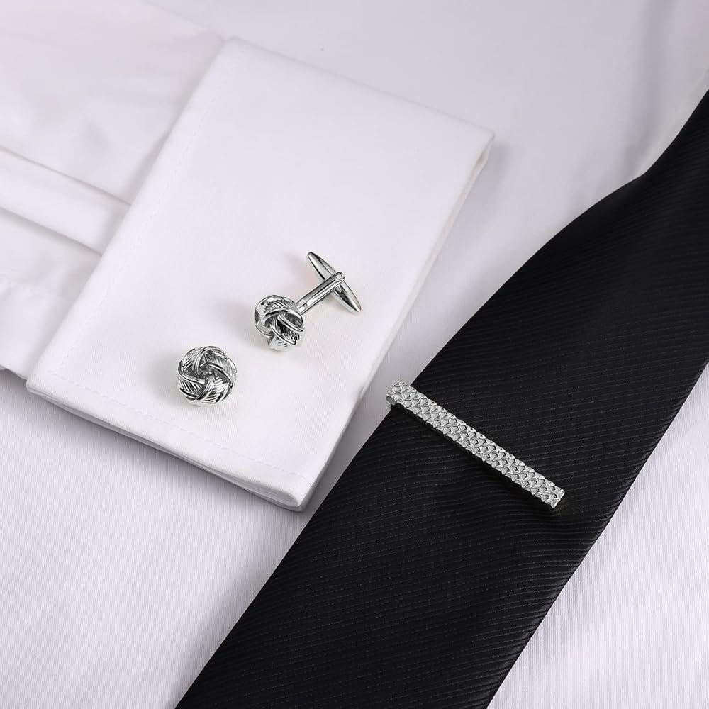 العبوة: تشتمل كل مجموعة على زوج من أزرار الأكمام المعقودة، وشريط مشبك ربطة عنق متطابق مقاس 5 سم. يتوافق مع قطعة قماش تنظيف المجوهرات، وتأتي المجموعة من صندوق هدايا أسود مع حبل مرن عالي الجودة لتثبيت كل قطعة في مكانها.