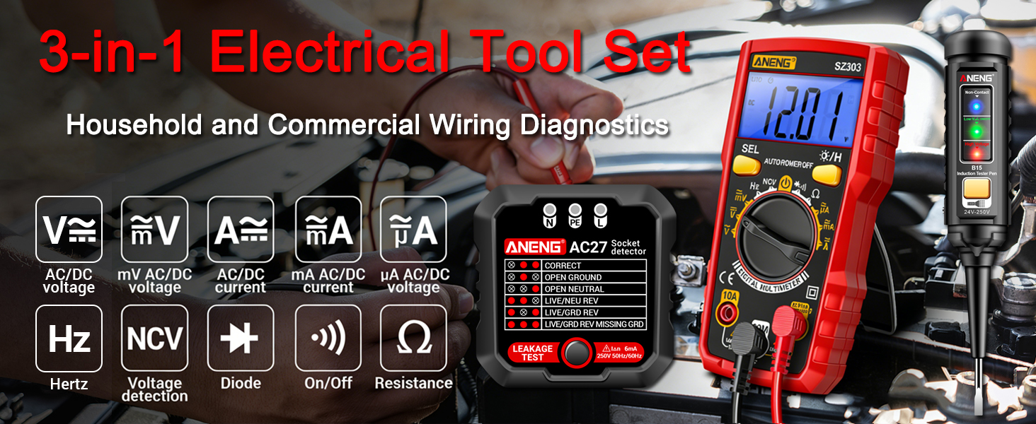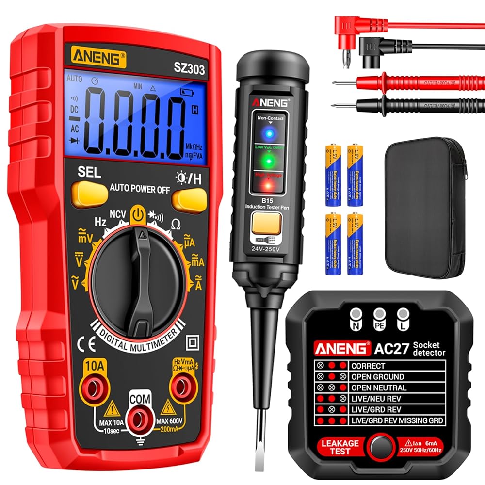 مجموعة اختبار كهربائية كاملة: مجموعة أدوات متعددة 3 في 1 من Chelectnis تتضمن SZ303 Amp Voltmeter، وقلم اختبار الجهد الكهربي غير المتصل B15 واختبار مقبس مخرج AC27، وبطاريات AAA، ودليل المستخدم وحقيبة التخزين. تغطي جميع القياسات الكهربائية الأساسية لتشخيصات المنزل والمكتب والسيارات في حزمة واحدة فعالة من حيث التكلفة. مصممة للكهربائيين ومحترفي التدفئة والتهوية وتكييف الهواء (HVAC) والمخصصين أصحاب الأعمال اليدوية الذين يقدرون الكفاءة ويحتاجون إلى إنجاز المهمة بشكل صحيح - دون توقف