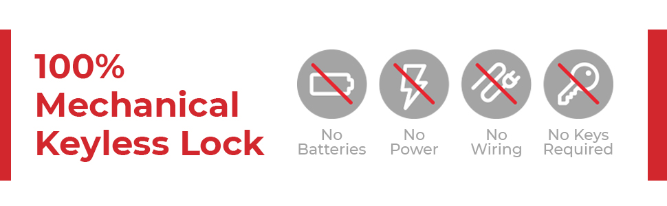 لا حاجة إلى بطاريات أو طاقة - تشغيل ميكانيكي موثوق حتى أثناء انقطاع التيار الكهربائي أو انقطاع التيار الكهربائي. يتم تشغيل الأقفال تلقائيًا في كل مرة يتم فيها إغلاق الباب.