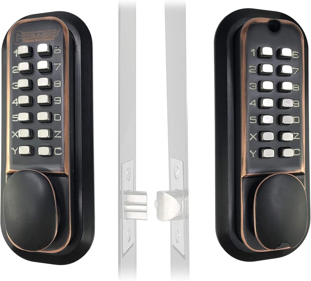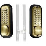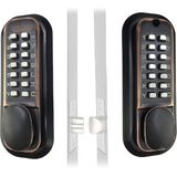 قفل باب مزلاج ميكانيكي بدون مفتاح من JOUNJIP [مغزل مسطح] - لوحات مفاتيح مزدوجة الجوانب للبوابات والأسوار والنوافذ - لا توجد بطارية ولا حاجة إلى طاقة (برونز مطلي بالزيت) - ليس مسمارًا مميتًا