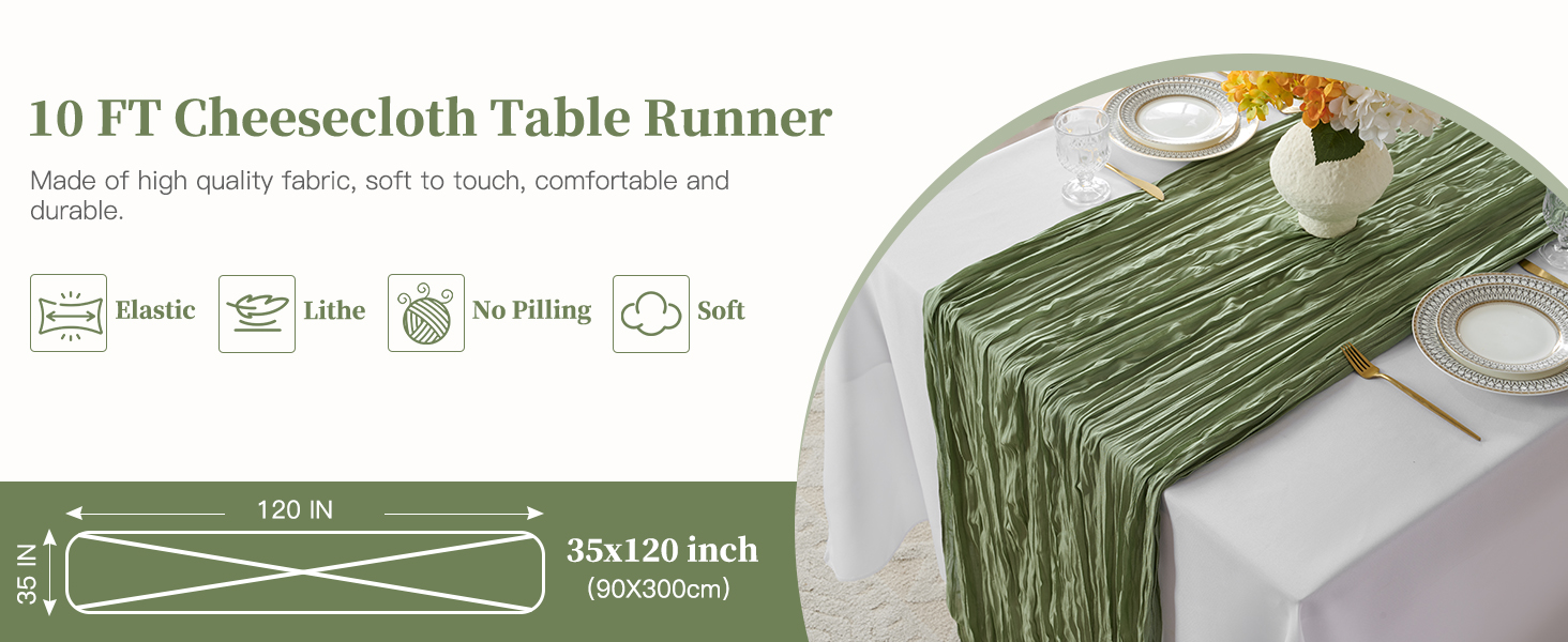 6 عبوات قيمة: سوف تحصل على 6 عبوات من مفرش الطاولة باللون الأخضر المريمية، يبلغ مقاس مفارش المائدة المصنوعة من القماش القطني حوالي 35 × 120 بوصة/90 × 300 سم لتغطية طاولة مستطيلة أو مستديرة يمكن أن تستوعب من 8 إلى 10 أشخاص. 10 أقدام هو الطول المثالي لديكورات طاولات الحفلات.