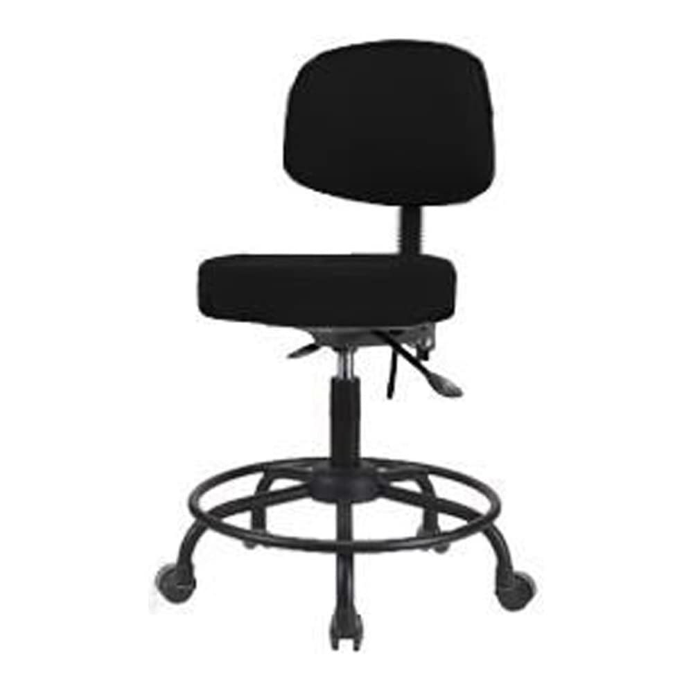 The product Type is vinyl desk height stool with back and round tube base, with tilt, casters, Gray. Country of origin is United States, manufacturer of this product is Thomas.
