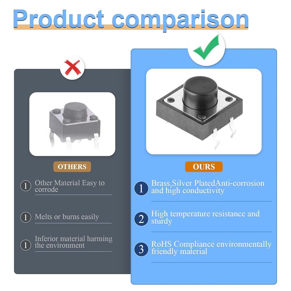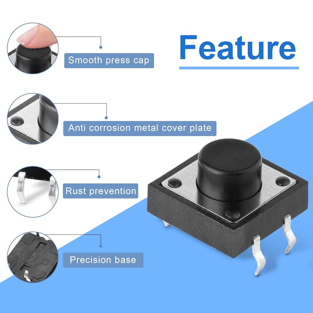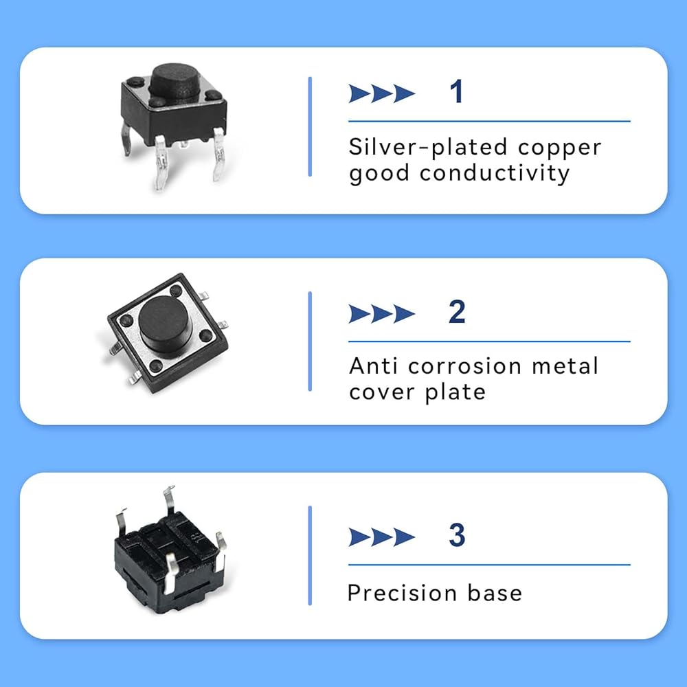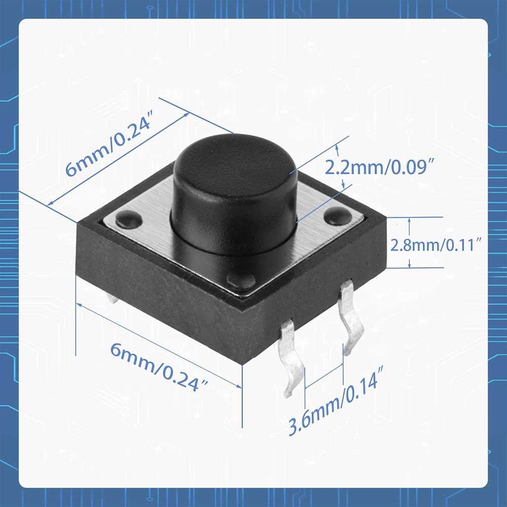 Dimension: 6 x 6 x 5mm /0.24x0.24x0.2inch(L x W x H) 4 pin momentary tactile push button switch