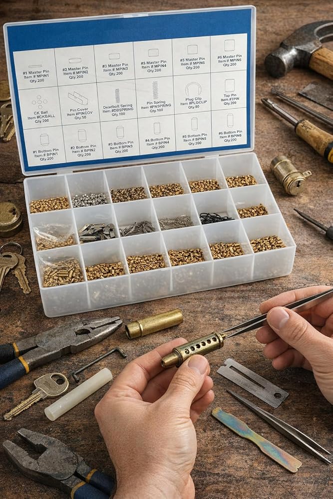 • Faster Rekeying with Fewer Errors: Precision-cut pins and professional tools help you work accurately the first time, reducing misalignment, wasted parts, and lock jams that commonly occur with low-quality rekey kits.