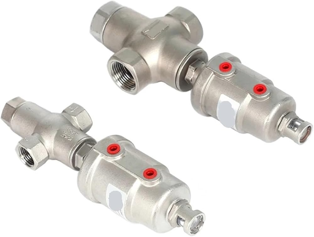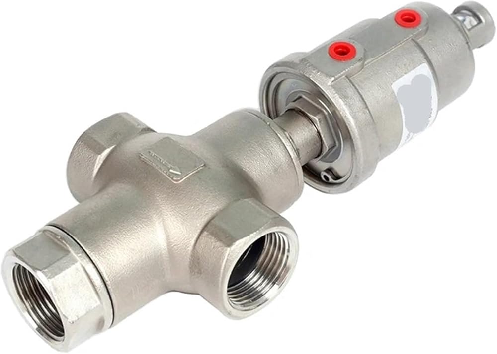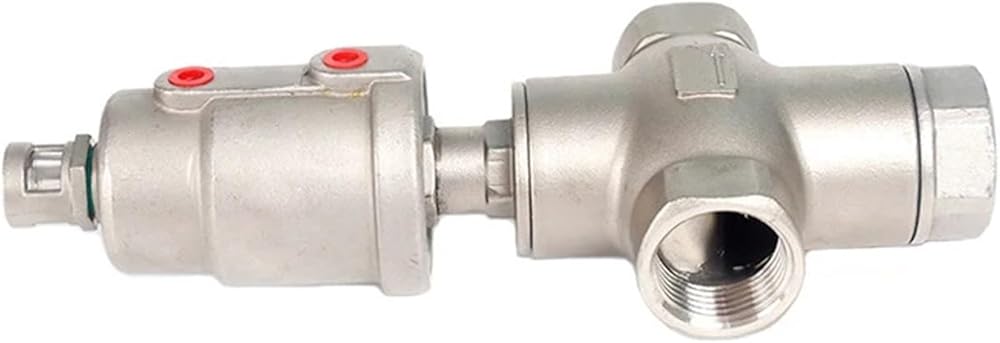This valve has three through holes, which can realize the functions of reversing, diverting, or mixing, and can replace the two two-way stop valves to a certain extent. When the valve is not working, due to the action of the spring force, end C of the valve is normally closed and end B is normally open; when the compressed gas drives the actuator piston, end C of the valve is open and end B is closed. In double-acting form, the valve opens and closes controlled by compressed air.