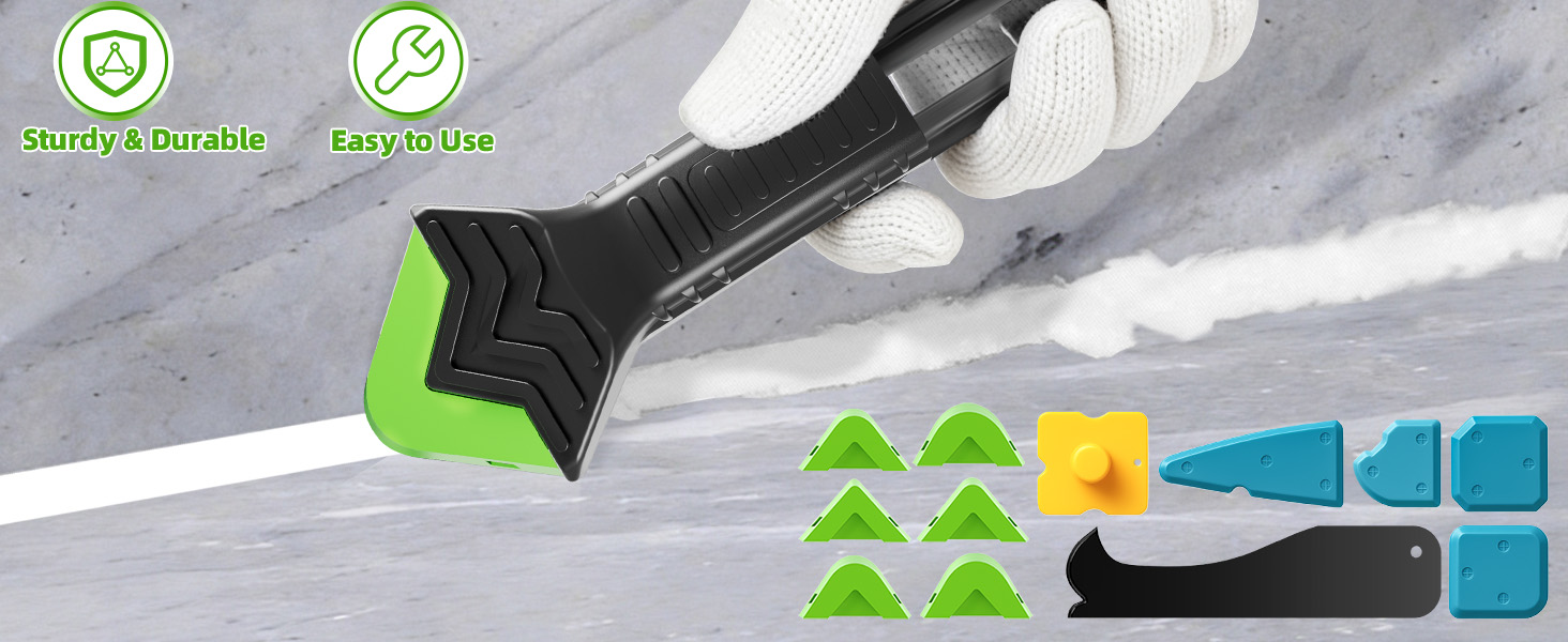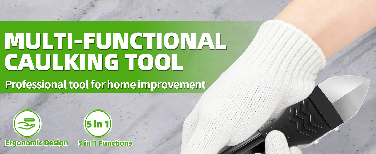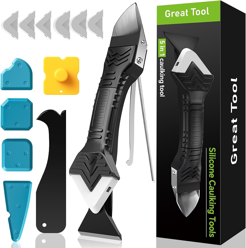 【استخدام عالمي】 تتميز مجموعة أدوات السد 5 في 1 بوظائف متعددة، وتعمل مع جميع أنواع السد السيليكون، وهي تعمل بشكل جيد في الكثير من وظائف السد في الحمام والمطبخ والنوافذ والأرضيات للسد الداخلي والخارجي.