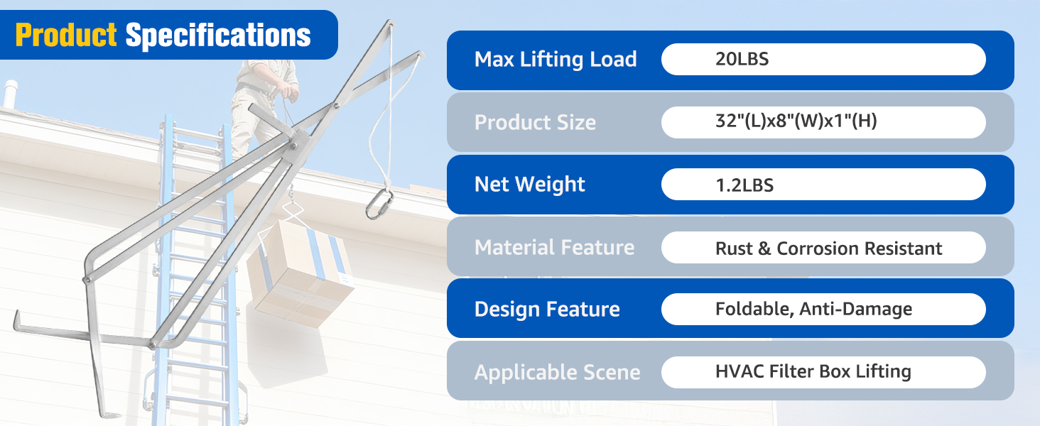 نظام الإمساك والسحب الآمن - تم تصميمه بنظام الإمساك والسحب، ما عليك سوى خفضه وإسقاطه ورفعه للإمساك بصناديق الفلتر بشكل آمن في المركز. توفر أداة HVAC هذه إمساكًا ثابتًا وموثوقًا، مما يقلل من خطر الانزلاق أو السقوط، مما يجعل الرفع عالي الوصول أكثر أمانًا وأسهل.